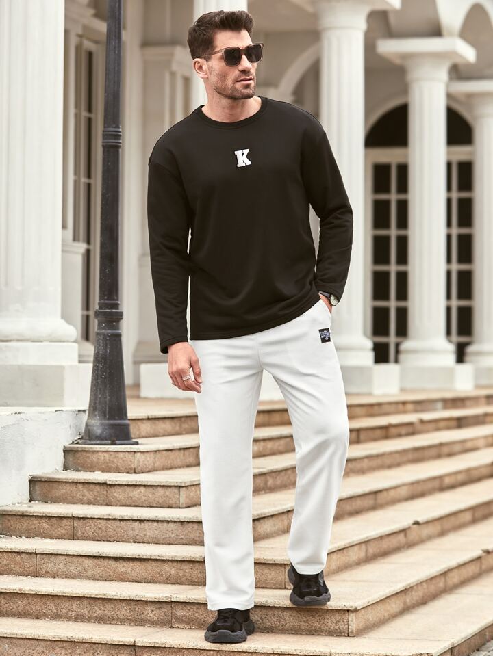 Guys Letter Patched Detail Drawstring Waist Sweatpants