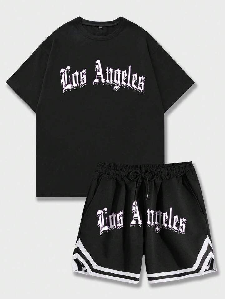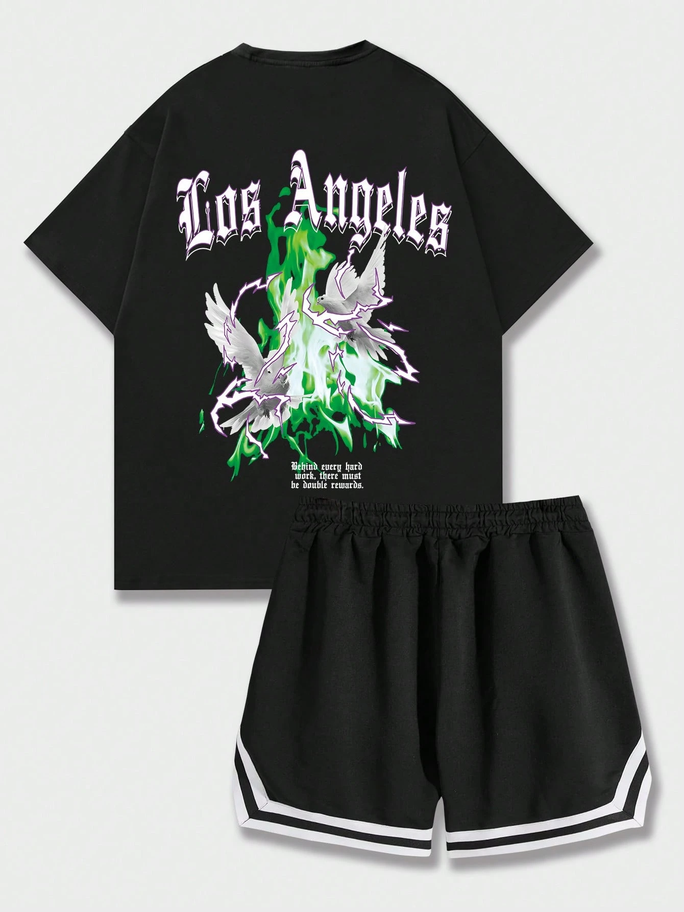 Guys Letter & Pigeon Graphic Tee & Striped Trim Shorts