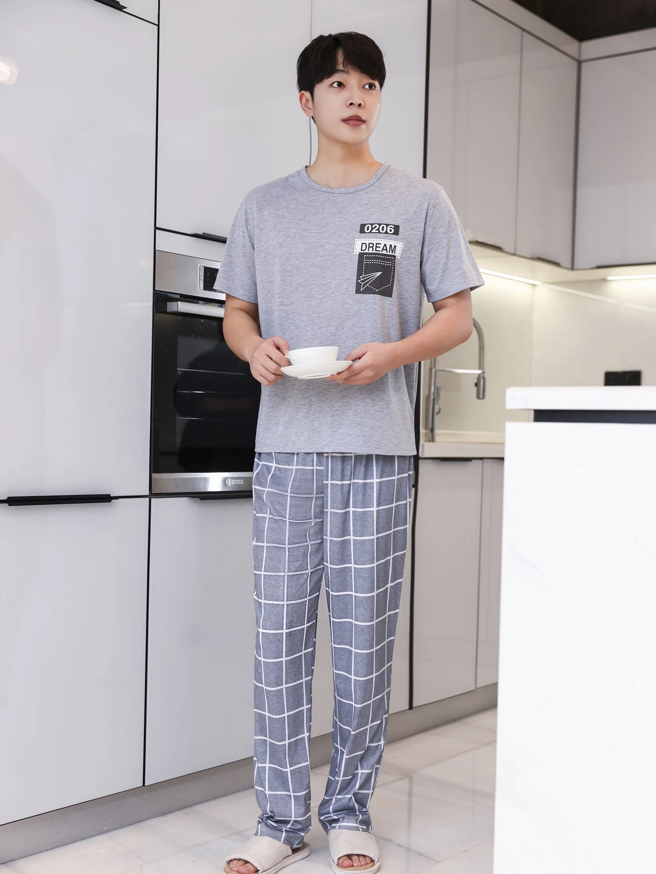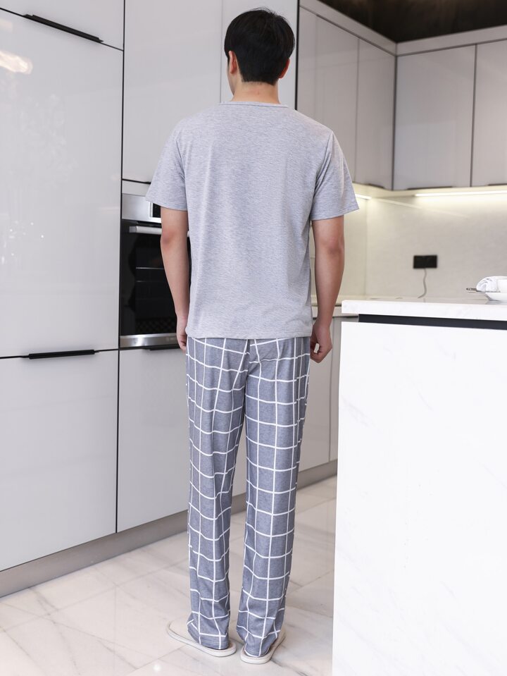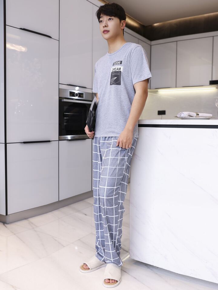 Guys Letter & Plaid Print PJ Set