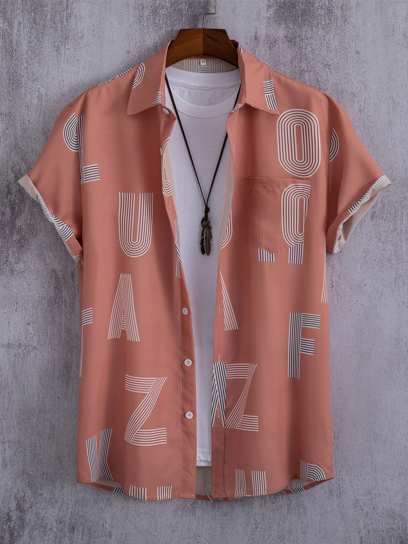 Guys Letter Print Button Front Pocket Shirt Without Tee