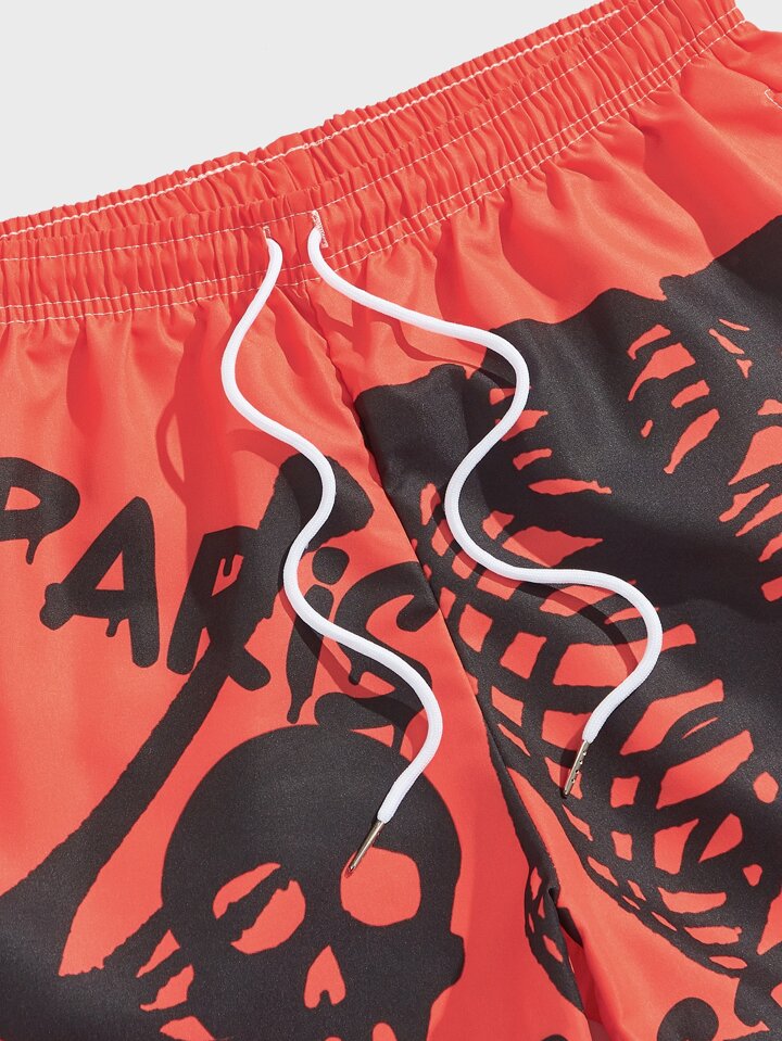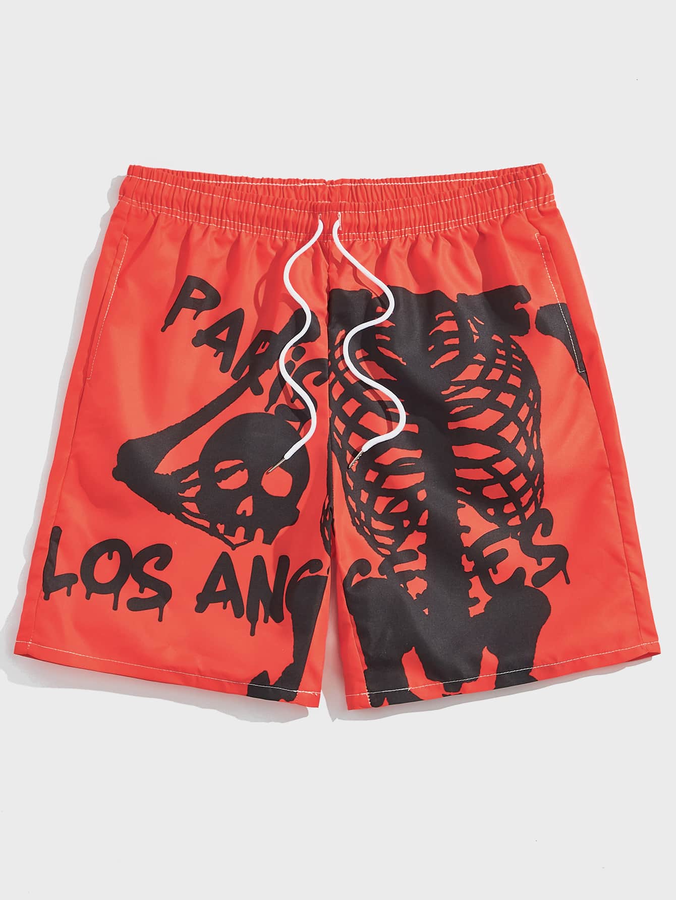 Guys Letter & Skeleton Print Drawstring Waist Shorts
