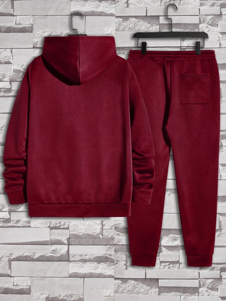Guys Patched Detail Drawstring Hoodie & Sweatpants