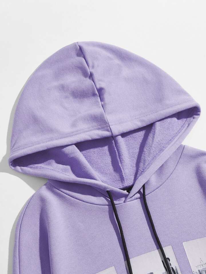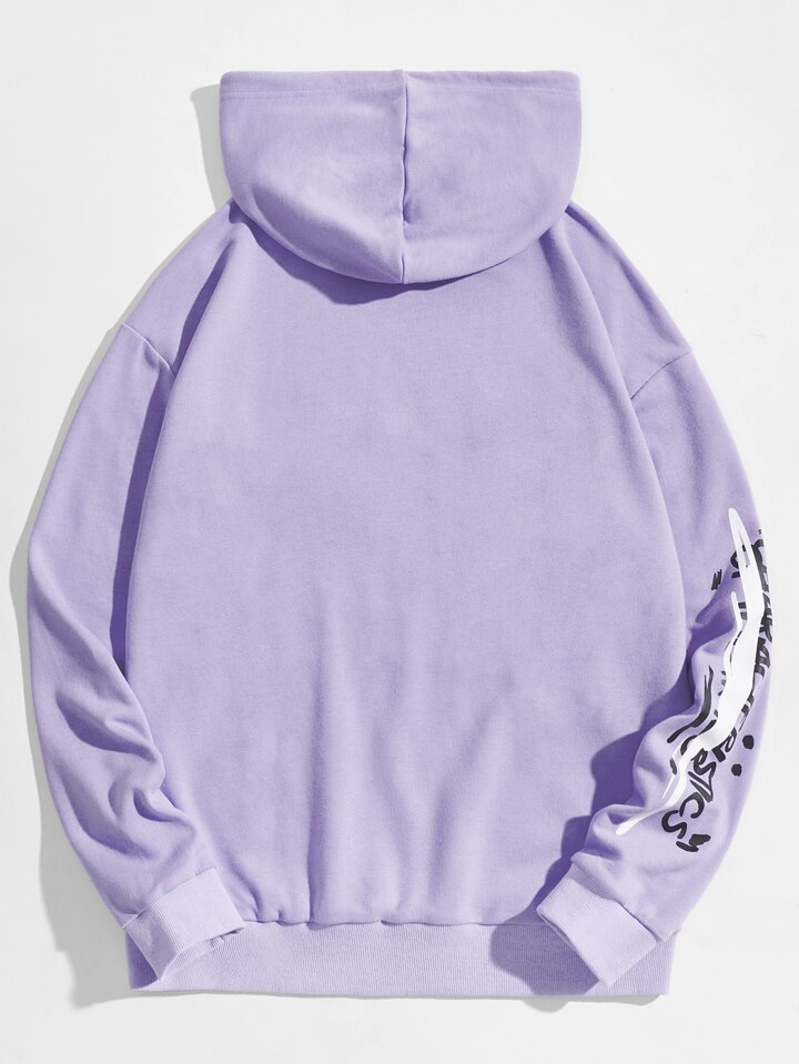 Guys Pouch Pocket Picture & Letter Graphic Hoodie