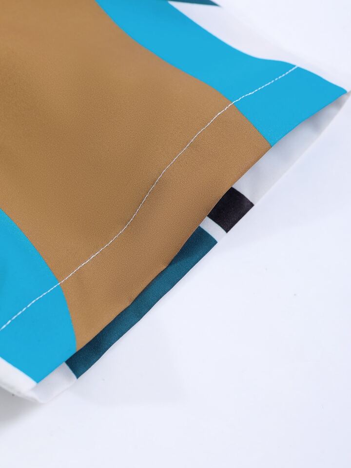Guys Random Color Block & Striped Print Shirt & Shorts Without Tee