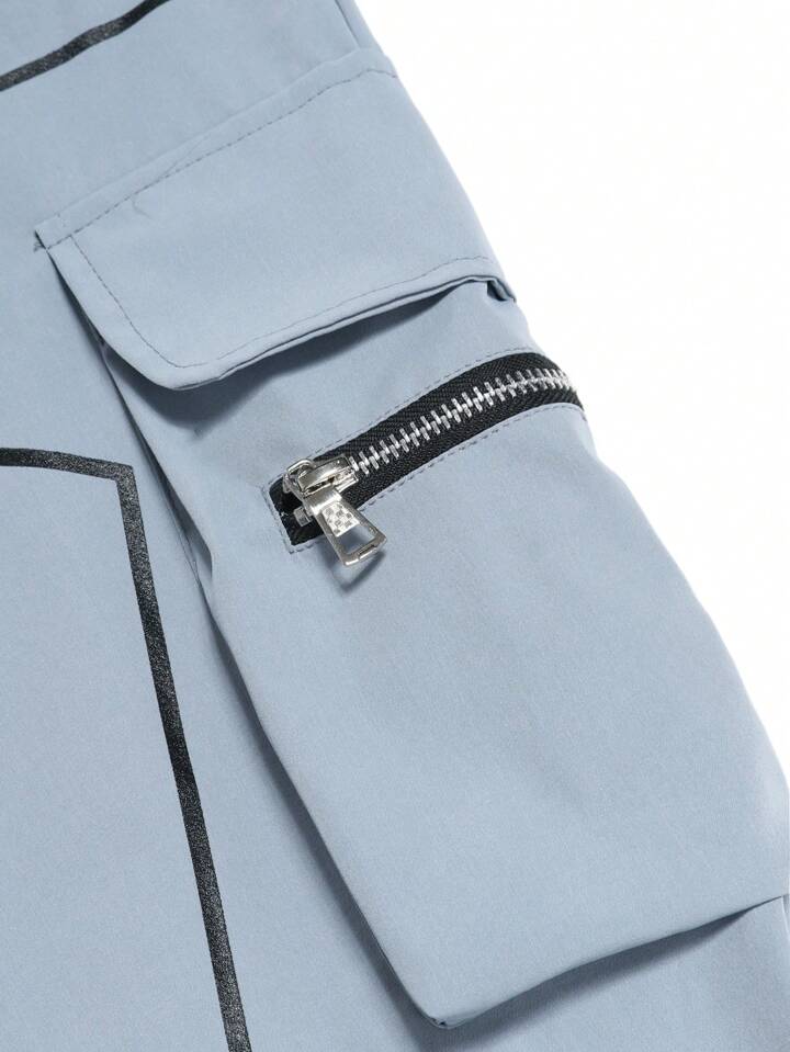 Guys Reflective Binding Drawstring Waist Cargo Pants