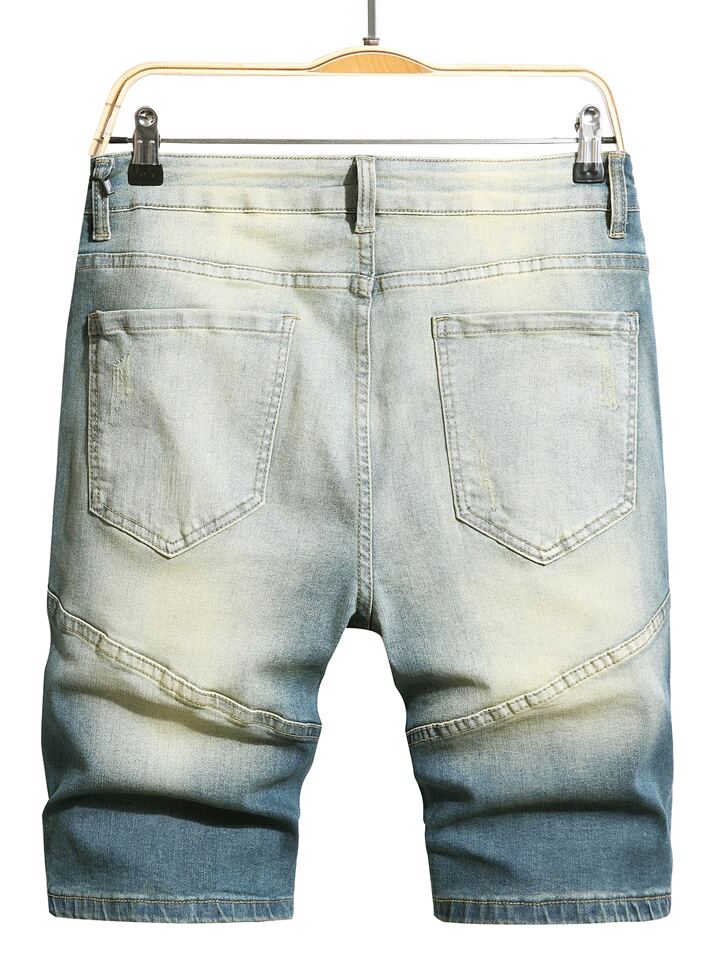 Guys Ripped Frayed Bleach Wash Denim Shorts