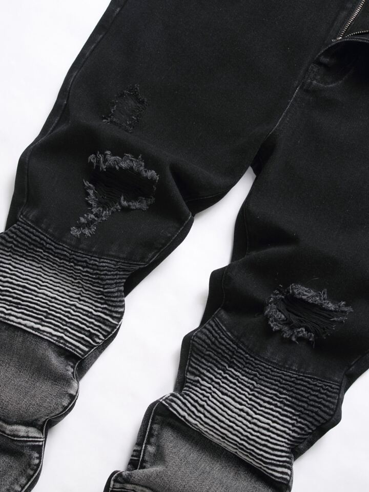 Guys Ripped Frayed Bleach Wash Jeans