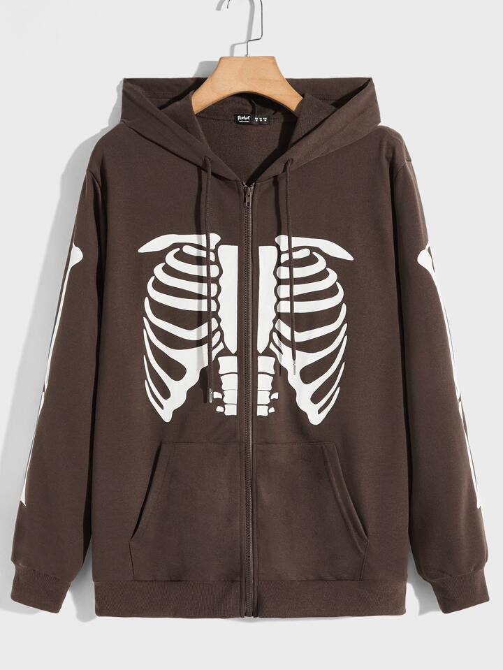 Guys Skeleton Print Drawstring Hoodie