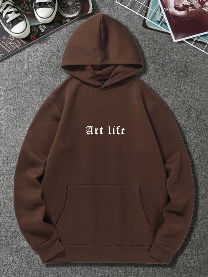 Guys Slogan & Figure Graphic Thermal Hoodie