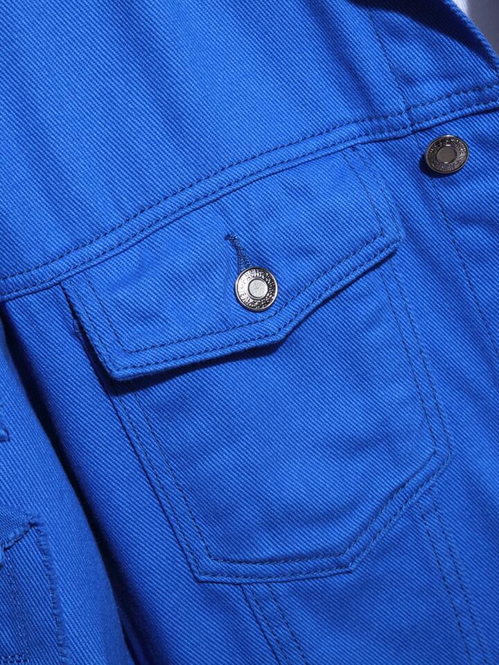 Guys Slogan Graphic Flap Pocket Denim Jacket Without Tee