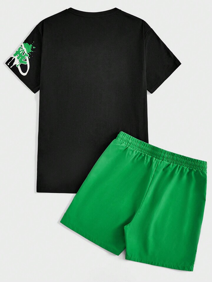 Guys Slogan Graphic Tee & Drawstring Waist Shorts