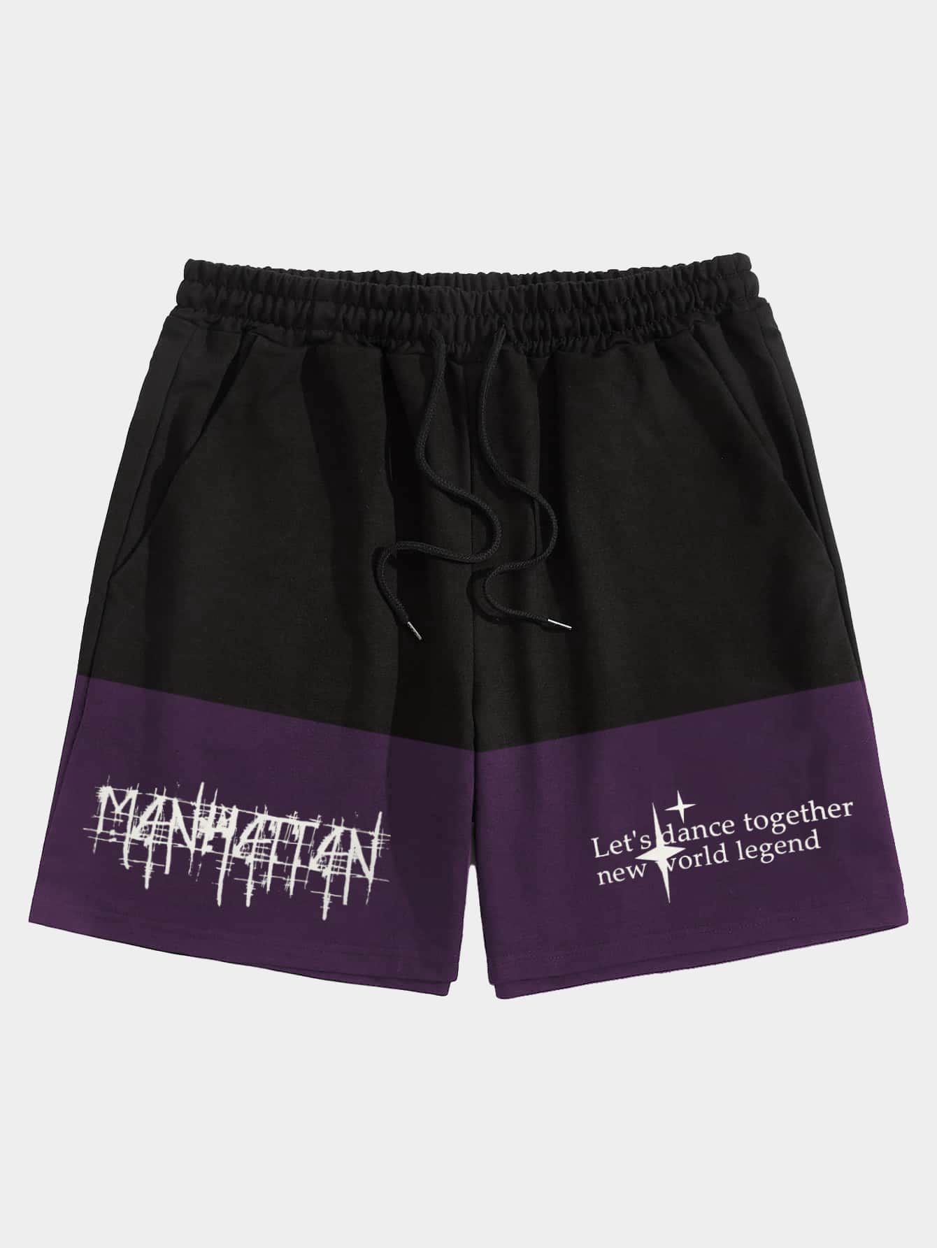 Guys Slogan Graphic Two Tone Drawstring Waist Shorts