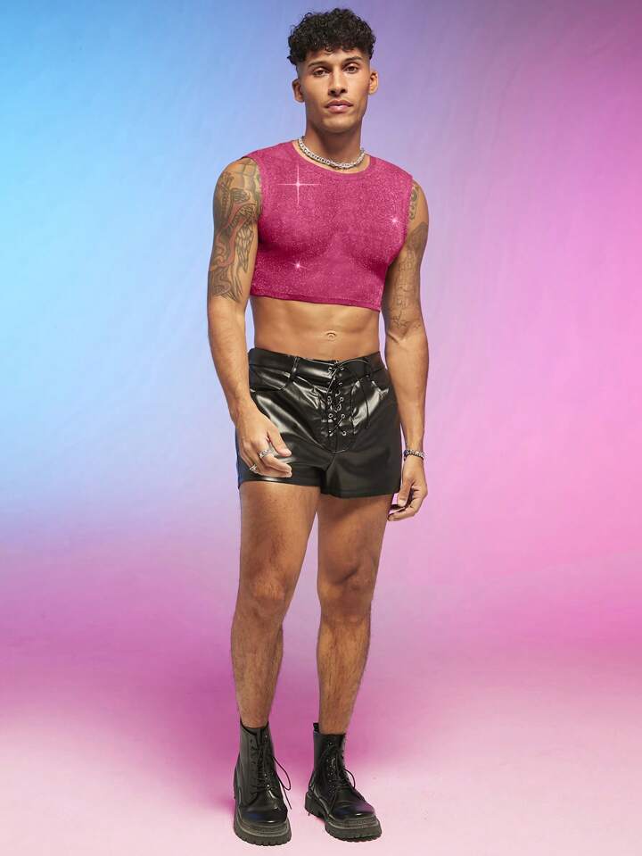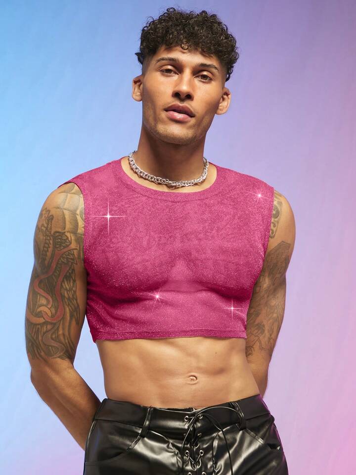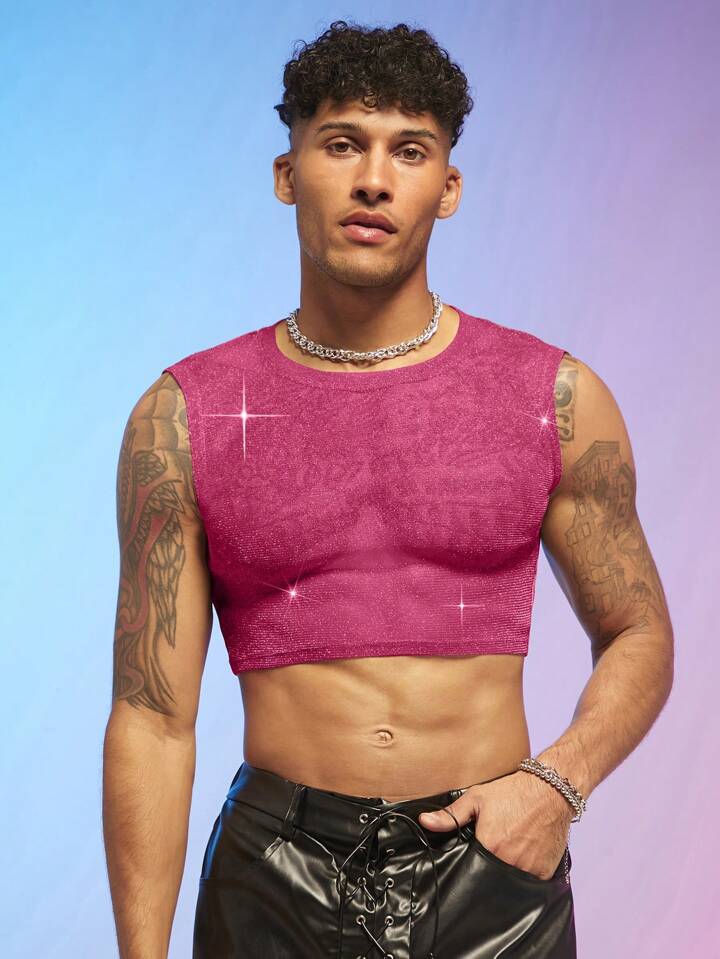 Guys Solid Crop Tank Top