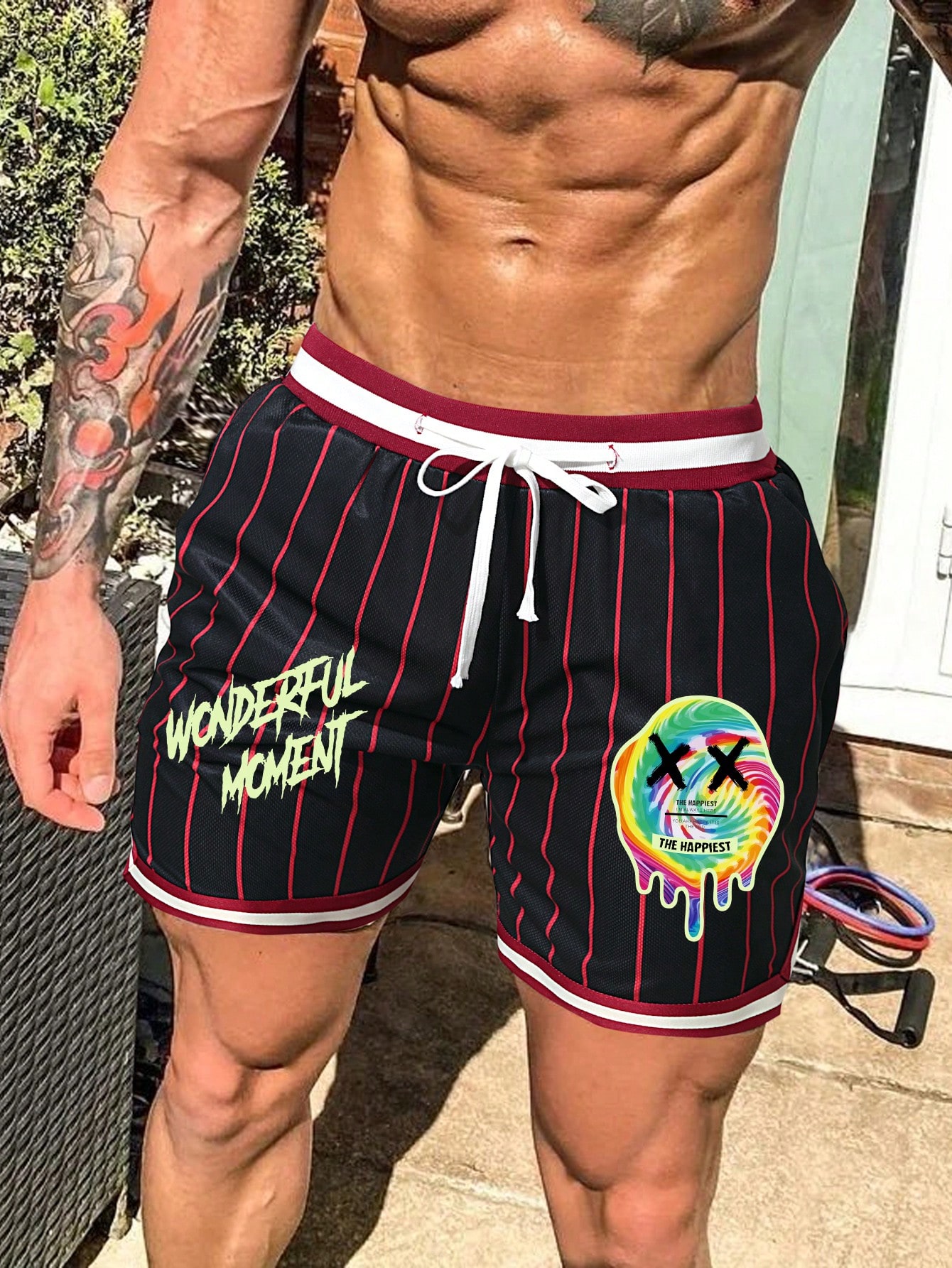 Guys Striped & Letter Graphic Drawstring Waist Shorts