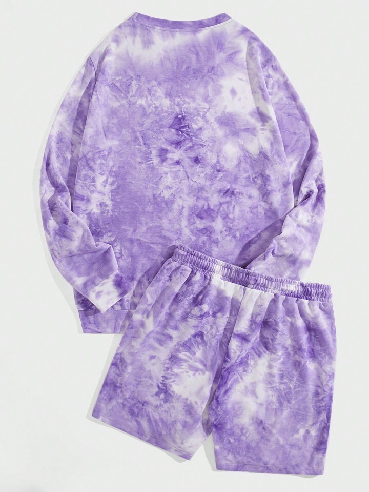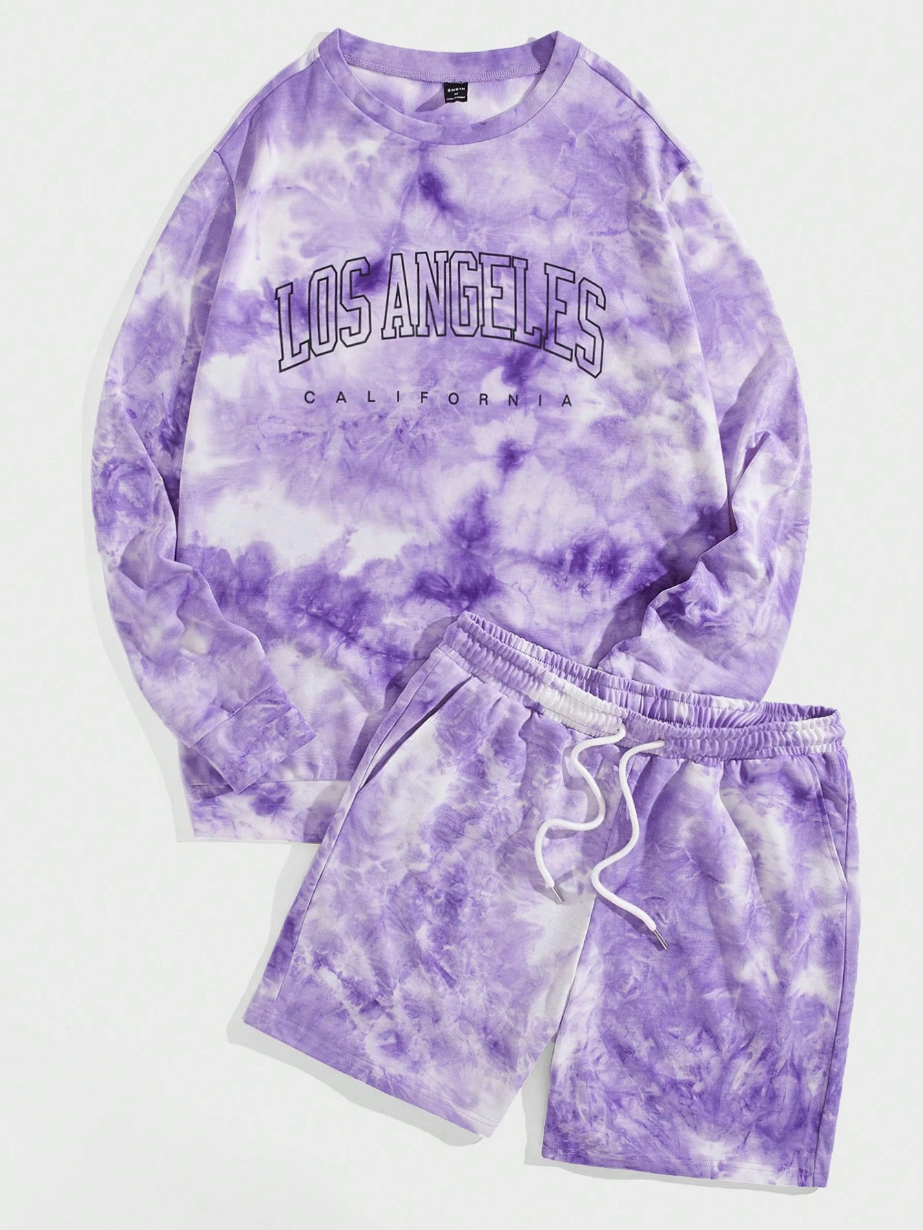 Guys Tie Dye Letter Graphic Pullover & Drawstring Waist Shorts