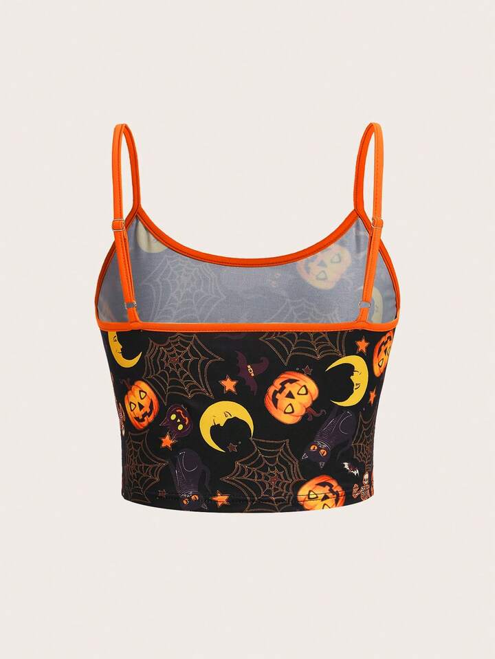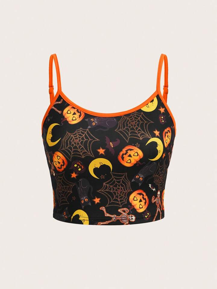 Halloween Print Contrast Binding Cami Top