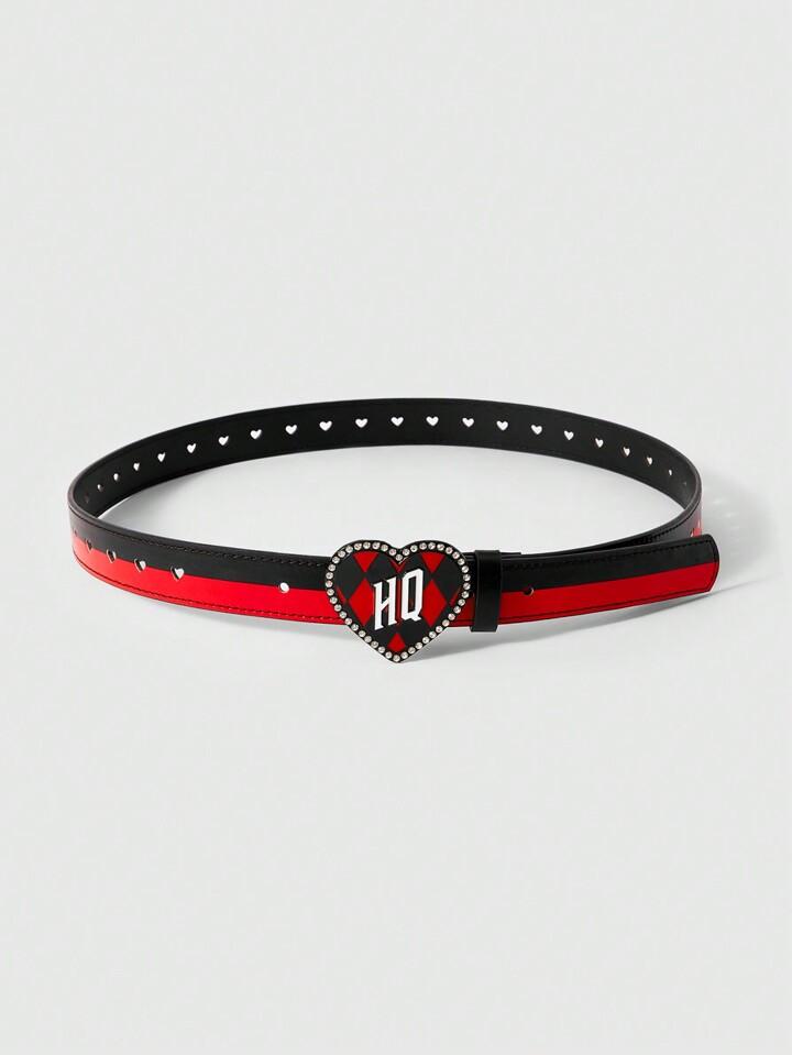 Harley Quinn | ROMWE Dark Cute Heart Gothic Colorblock Rhinestone Detail Belt, Valentines