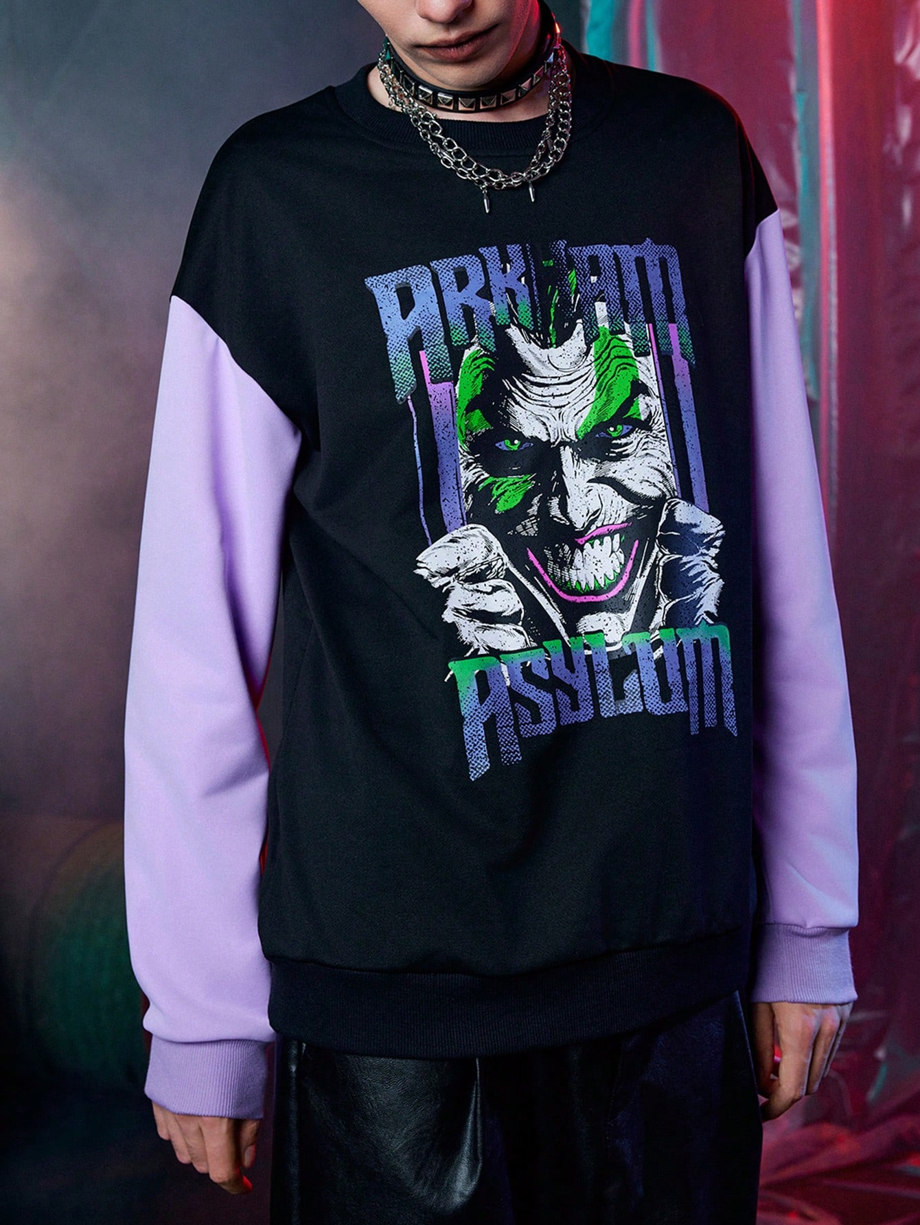 Harley Quinn | ROMWE Guys Skull & Letter Graphic Colorblock Drop Shoulder Sweatshirt