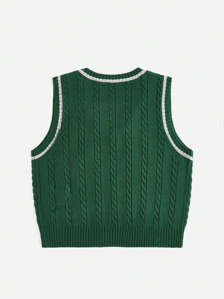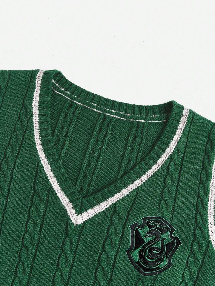 Harry Potter | ROMWE Plus Embroidery Pattern Striped Trim Cable Knit Sweater Vest
