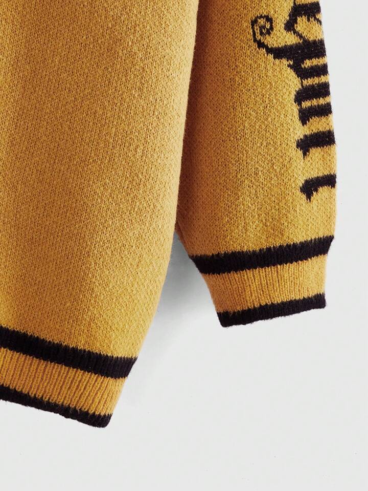 Harry Potter | ROMWE Plus Size Buttoned Front Cardigan With Letter Embroidery And Drop Shoulders, School