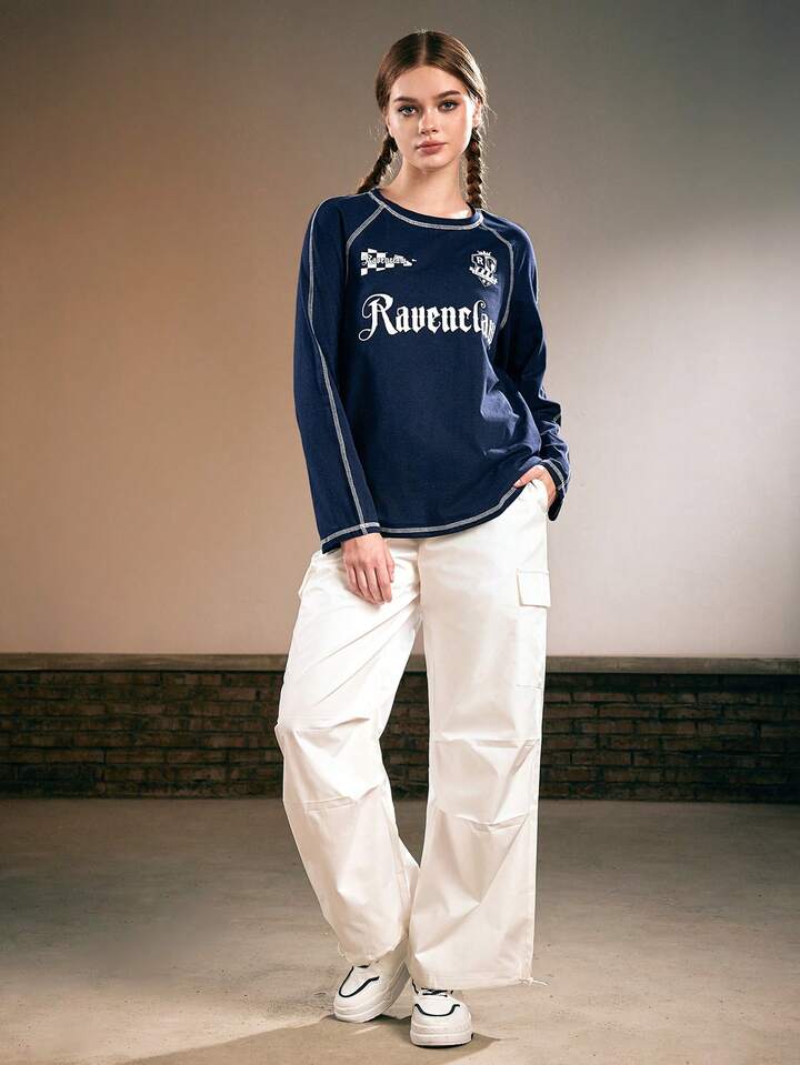 Harry Potter | ROMWE Women's Letter Print Raglan Sleeve stitched T-shirt