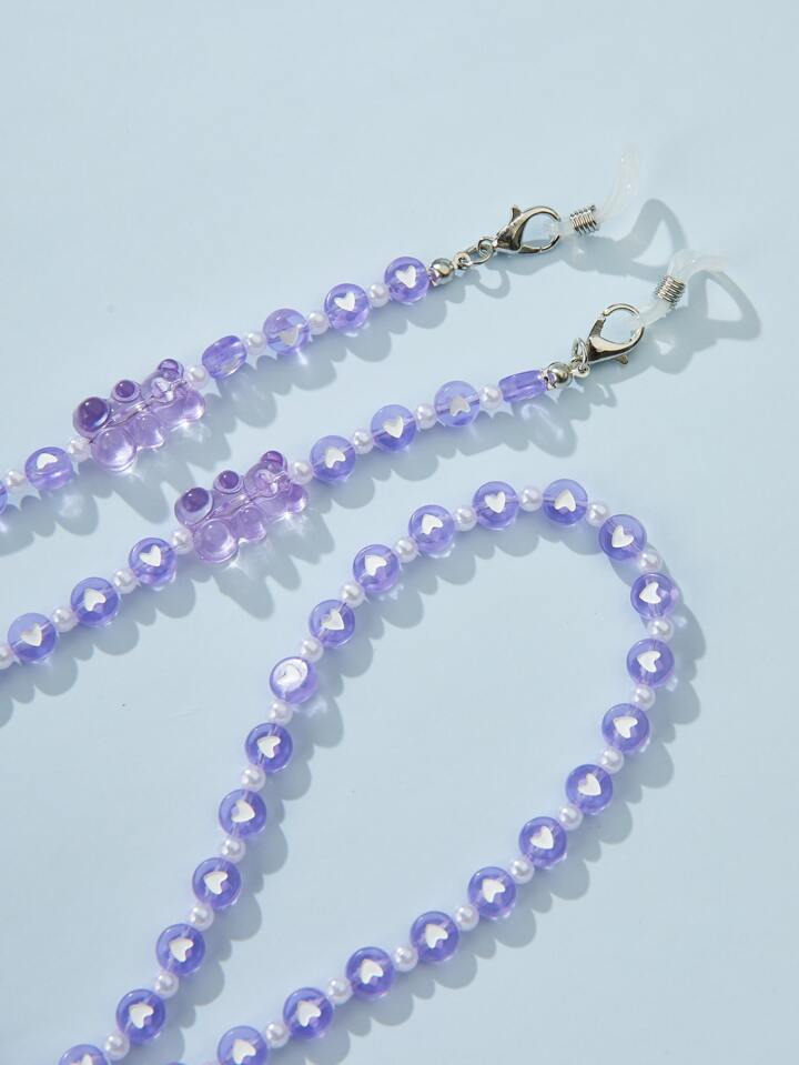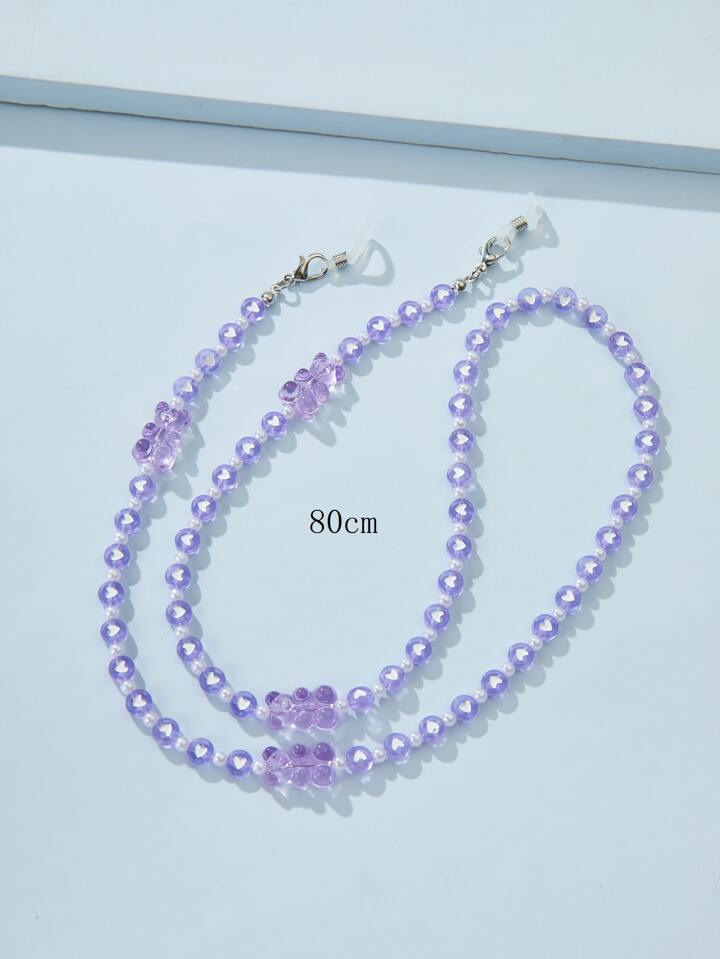Heart Detail Bear & Faux Pearl Decor Beaded Glasses Chain
