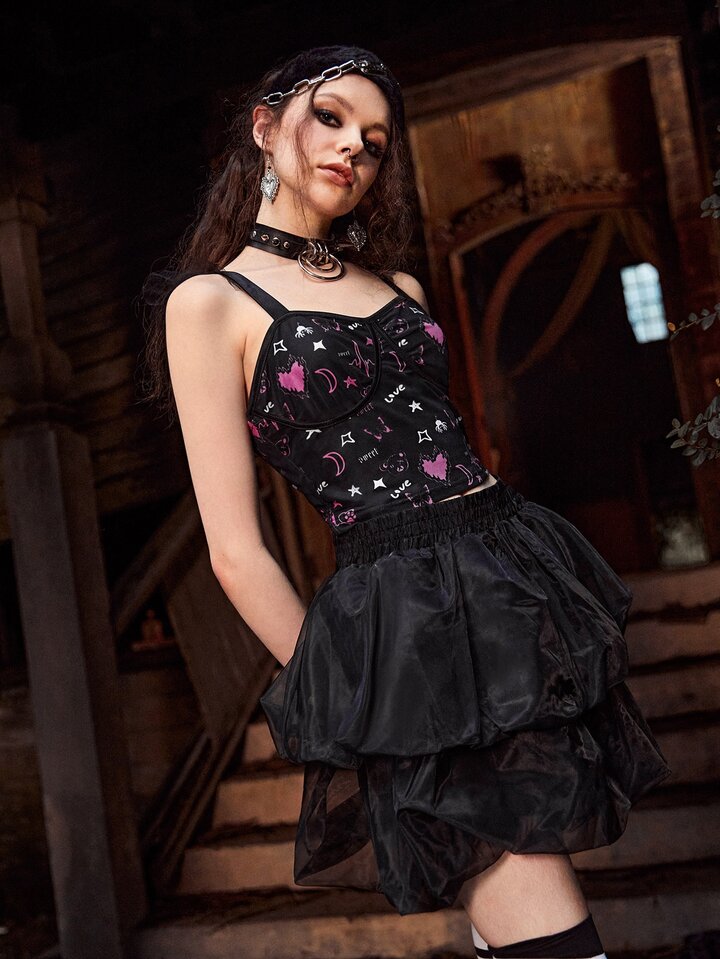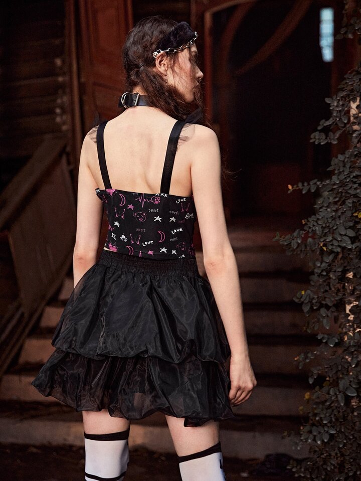 Heart Letter Graphic Ruffle Trim Top