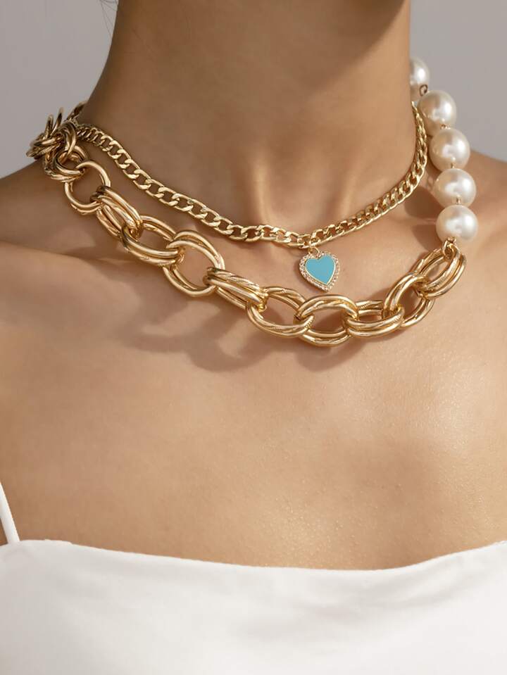 Heart Pendant Faux Pearl Decor Layered Necklace