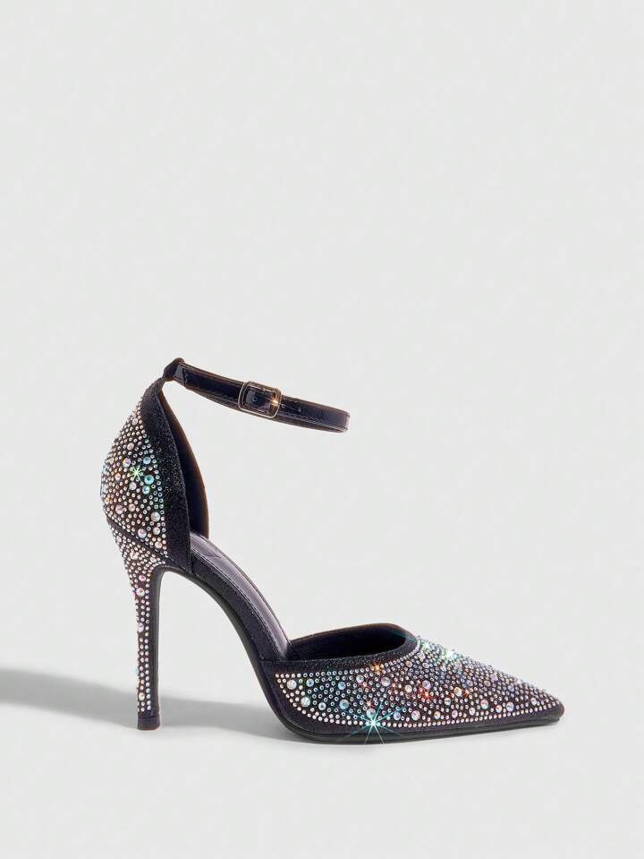 High Heel Pointed Toe Rhinestone Hollow Out Stiletto Heeled Women Sandals, Banquet Stage French Toe Fully Rhinestone Embellished Spring Shoes Spring Break Easter For Christmas