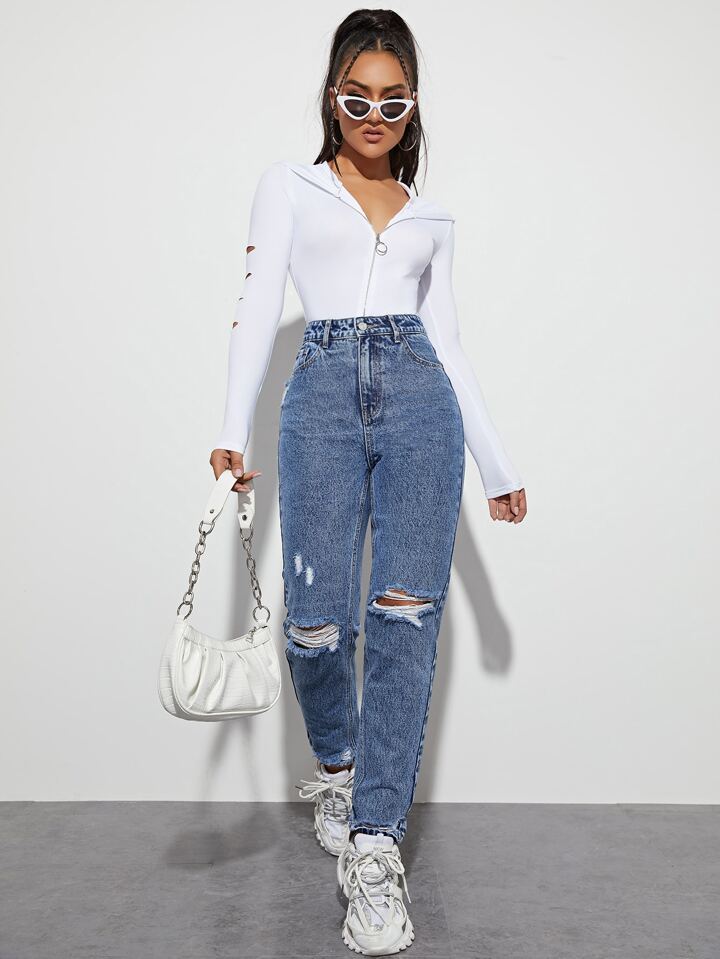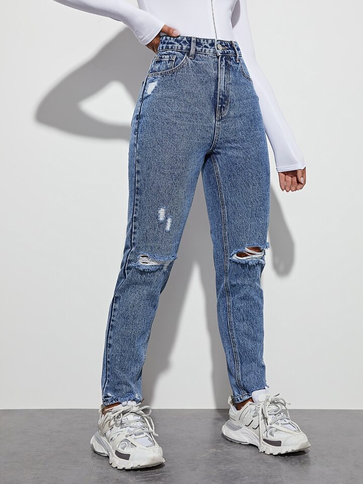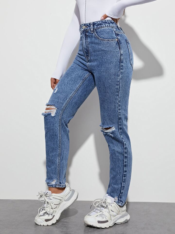 High Waist Ripped Straight Leg Jeans