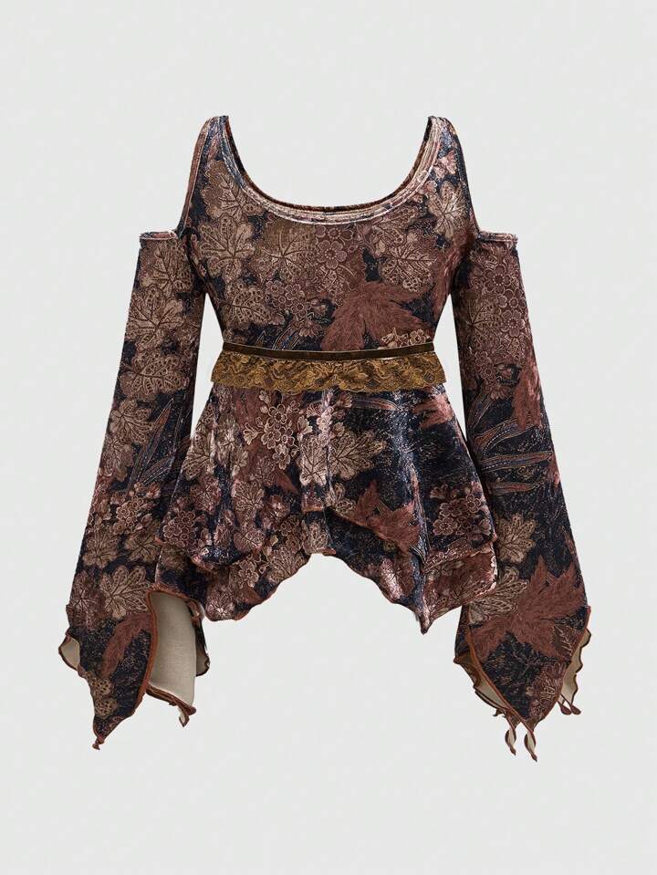 Hippie Leaf Print Off Shoulder Blouse For Women