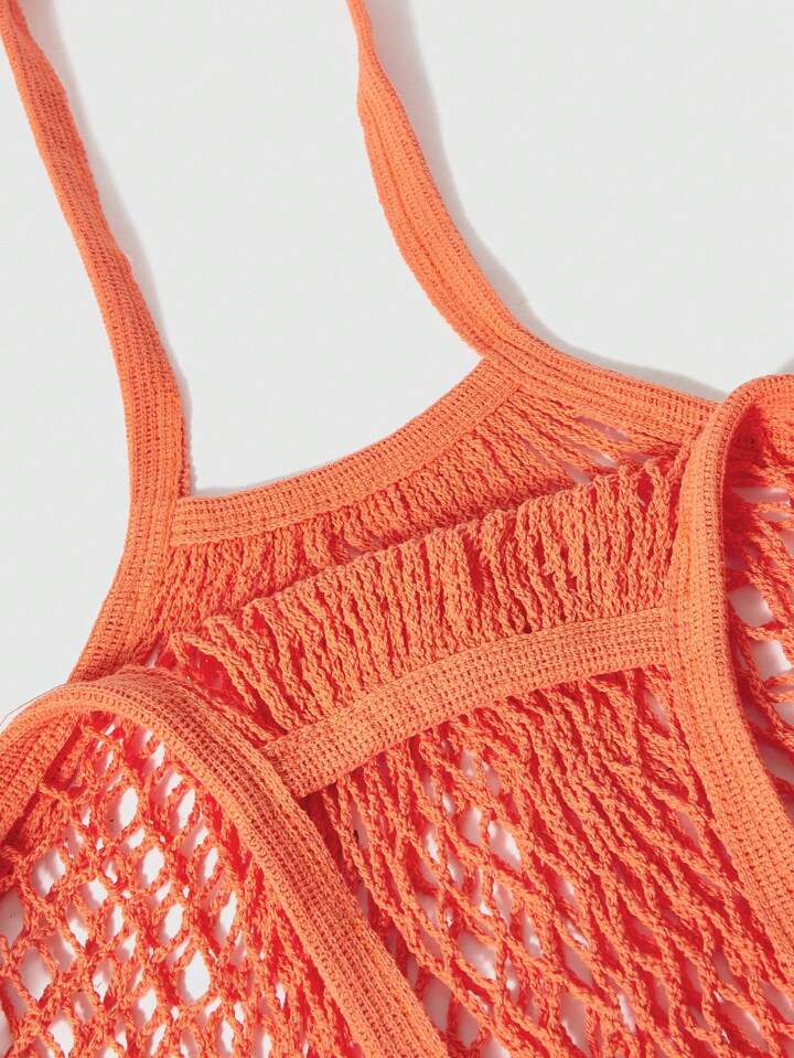 Hippie Medium Crochet Bag Casual Solid Hollow Out For Shopping
