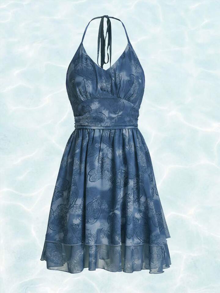 Hippie Paisley Tie Dye Halter Neck Backless Dress