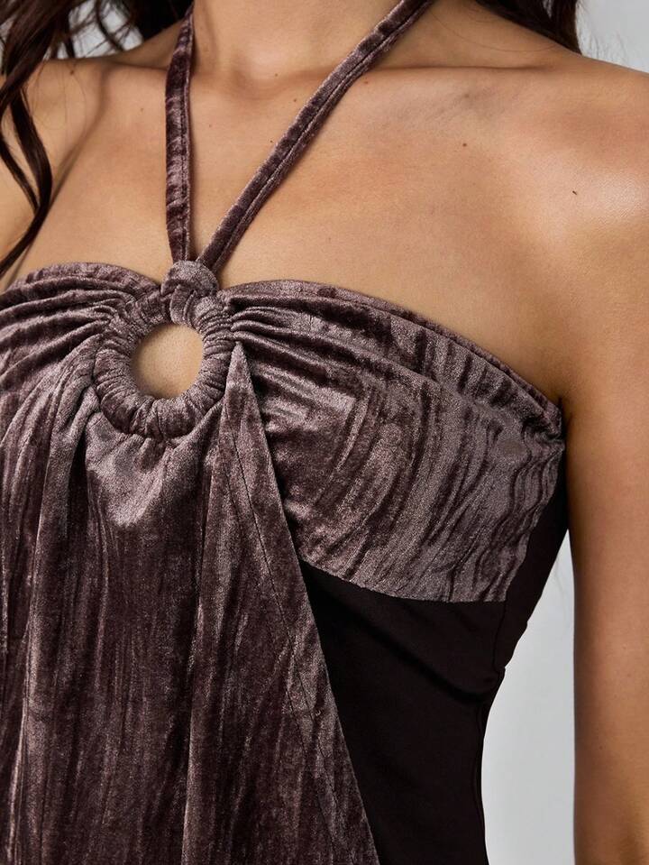 Hippie Pleated Velvet Halter Backless Sexy Mini Bodycon Dress For Women