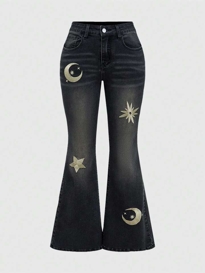 Hippie Plus Size Plain Color Fashion Casual Denim Jeans, Suitable For Summer