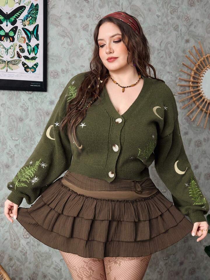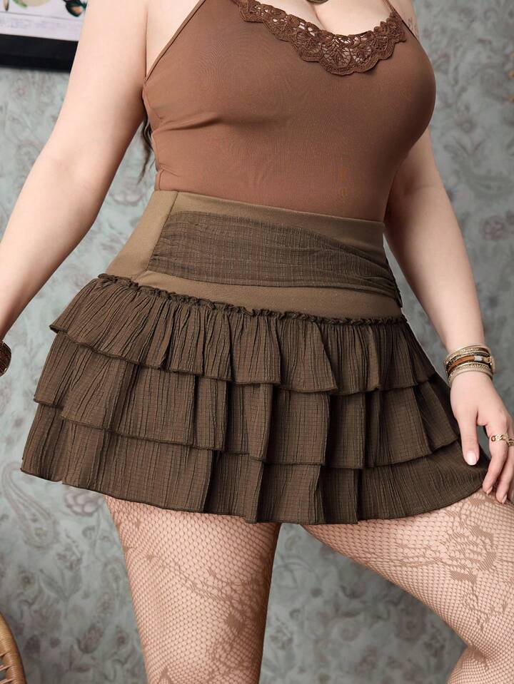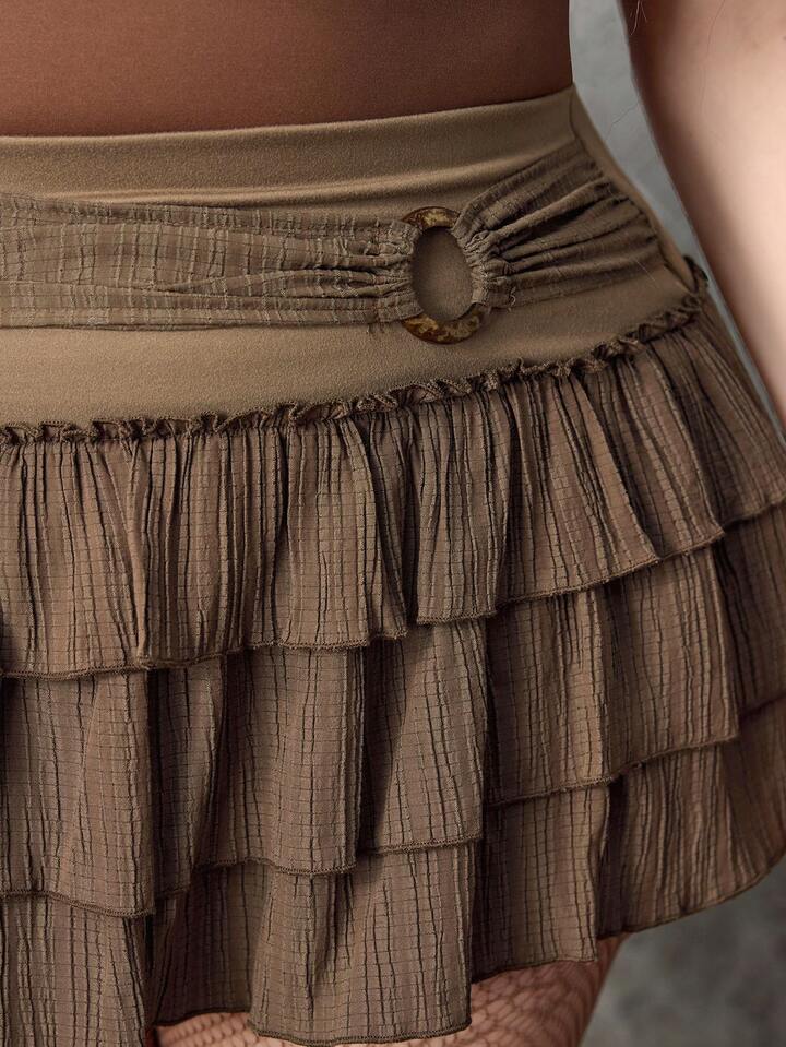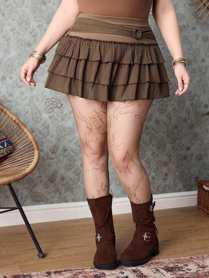 Hippie Plus Size Solid Color Layered Circular Decor Skirt