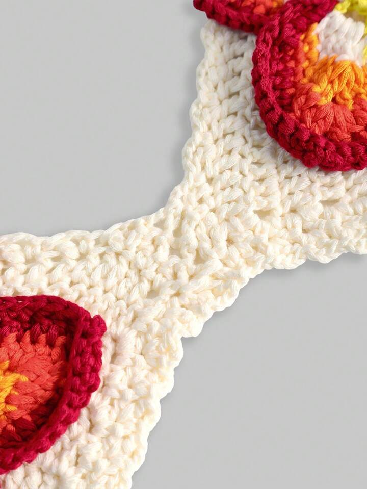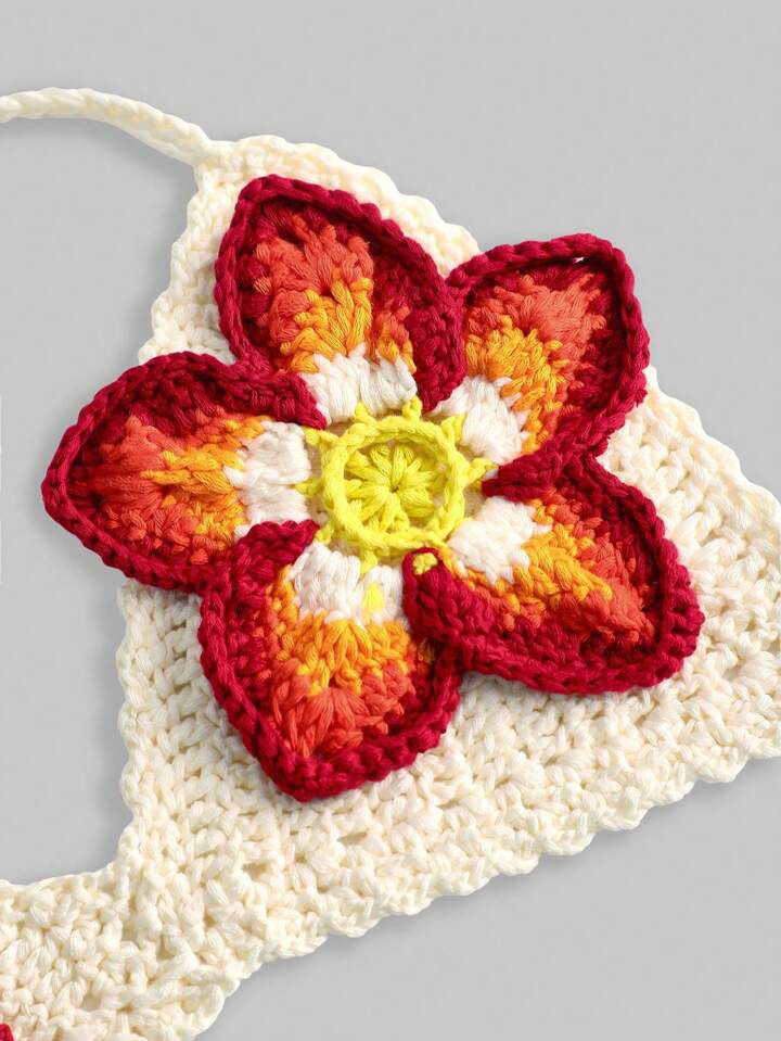 Hippie Summer Coconut Girl Beach Vacation Orange 3D Floral Knit Top For Women