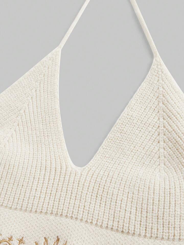 Hippie Summer Sexy Embroidered Backless Halter Knitted Top