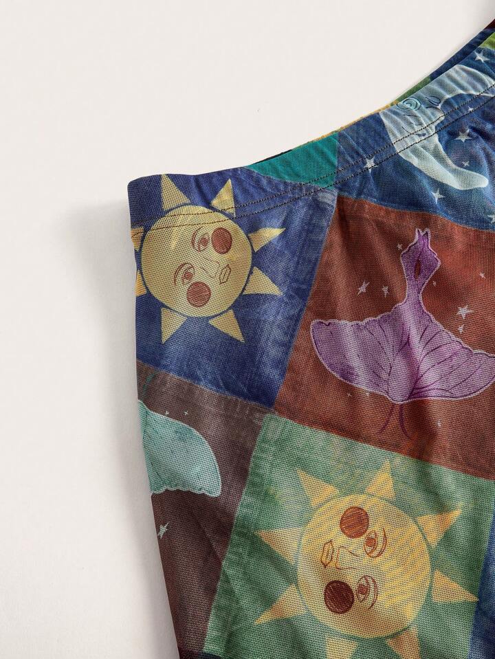 Hippie Sun & Moon Print Wrap Hem Skirt