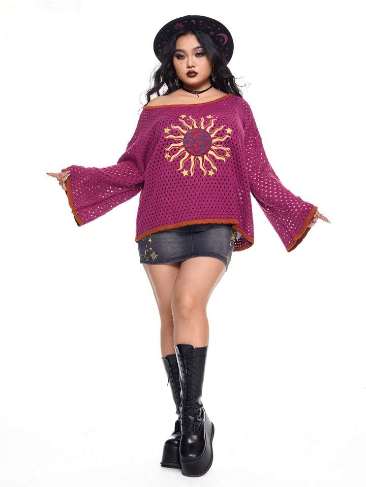 Hippie Whimsgoth Retro Sun Embroidery Pullover Sweater
