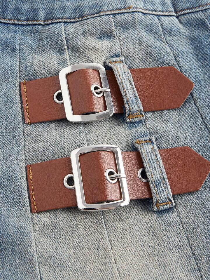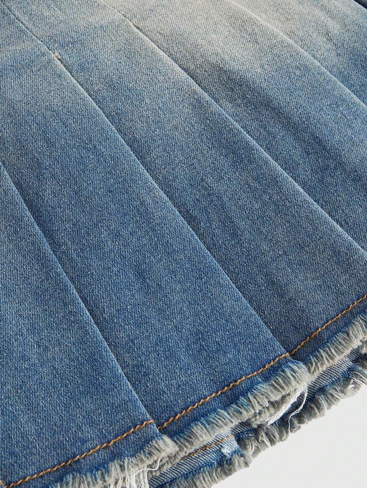 Hippie Women Casual Washed And Distressed Pleated Denim Skirt For Spring/Summer