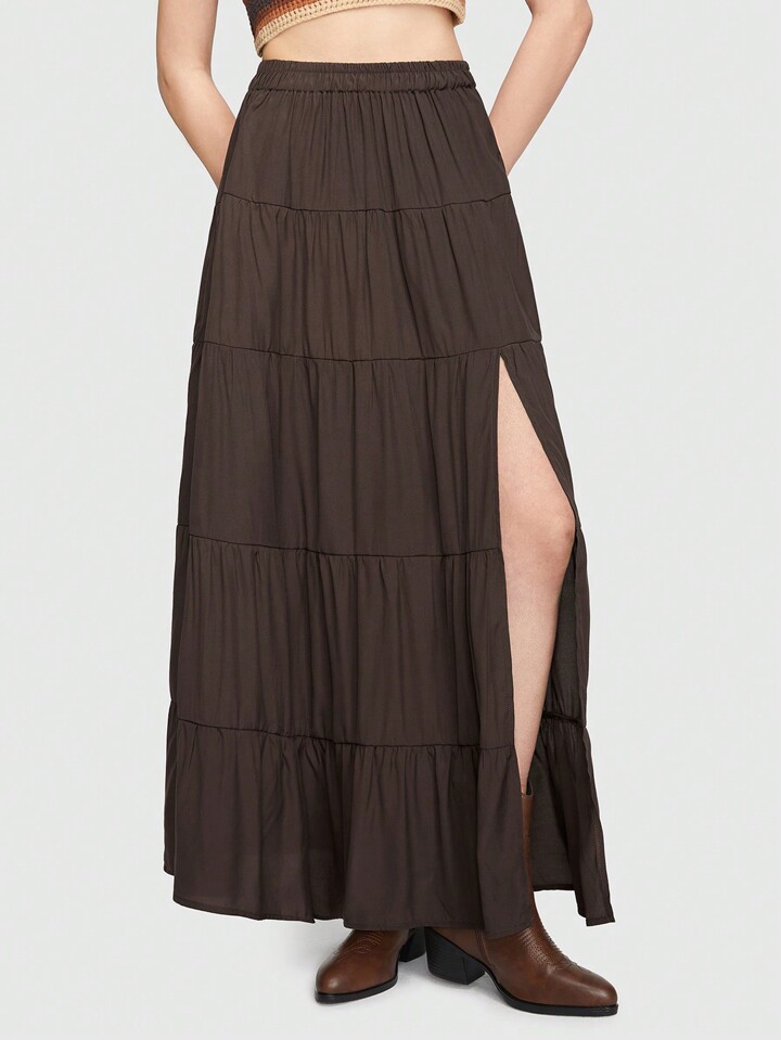 Hippie Women'S High-Split Hem Asymmetrical Ruffle Skirt