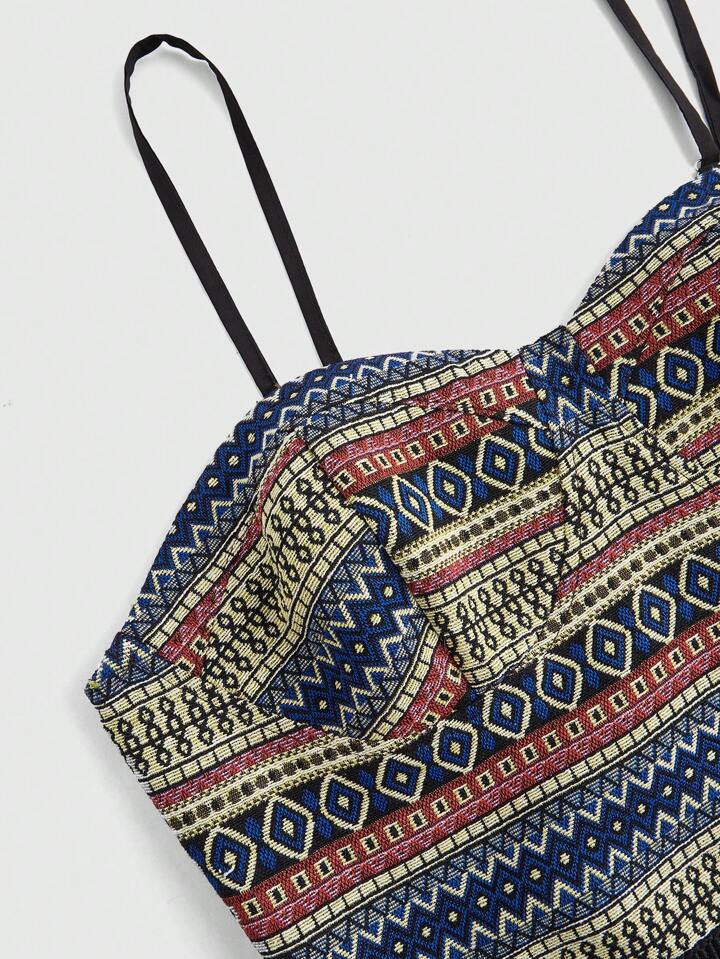 Hippie Women's Bohemian Style Geometric Printed Fringed Camisole