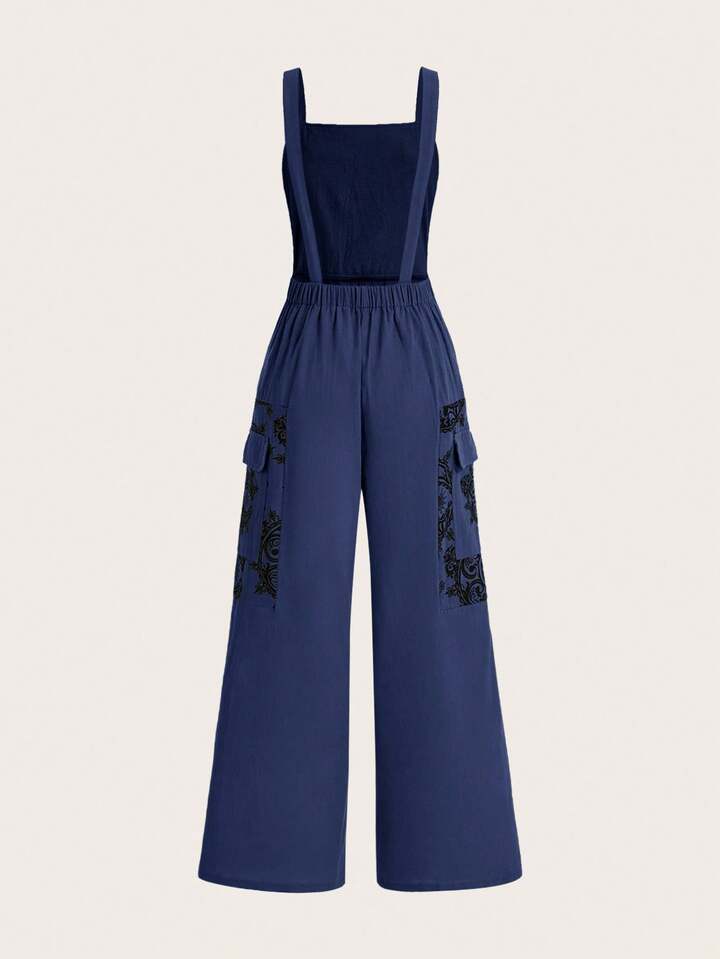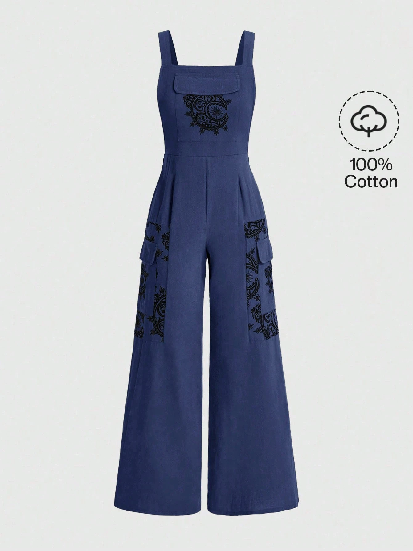Hippie Women's Floral Print Cargo Pocket Pleated Wide Leg Jumpsuit