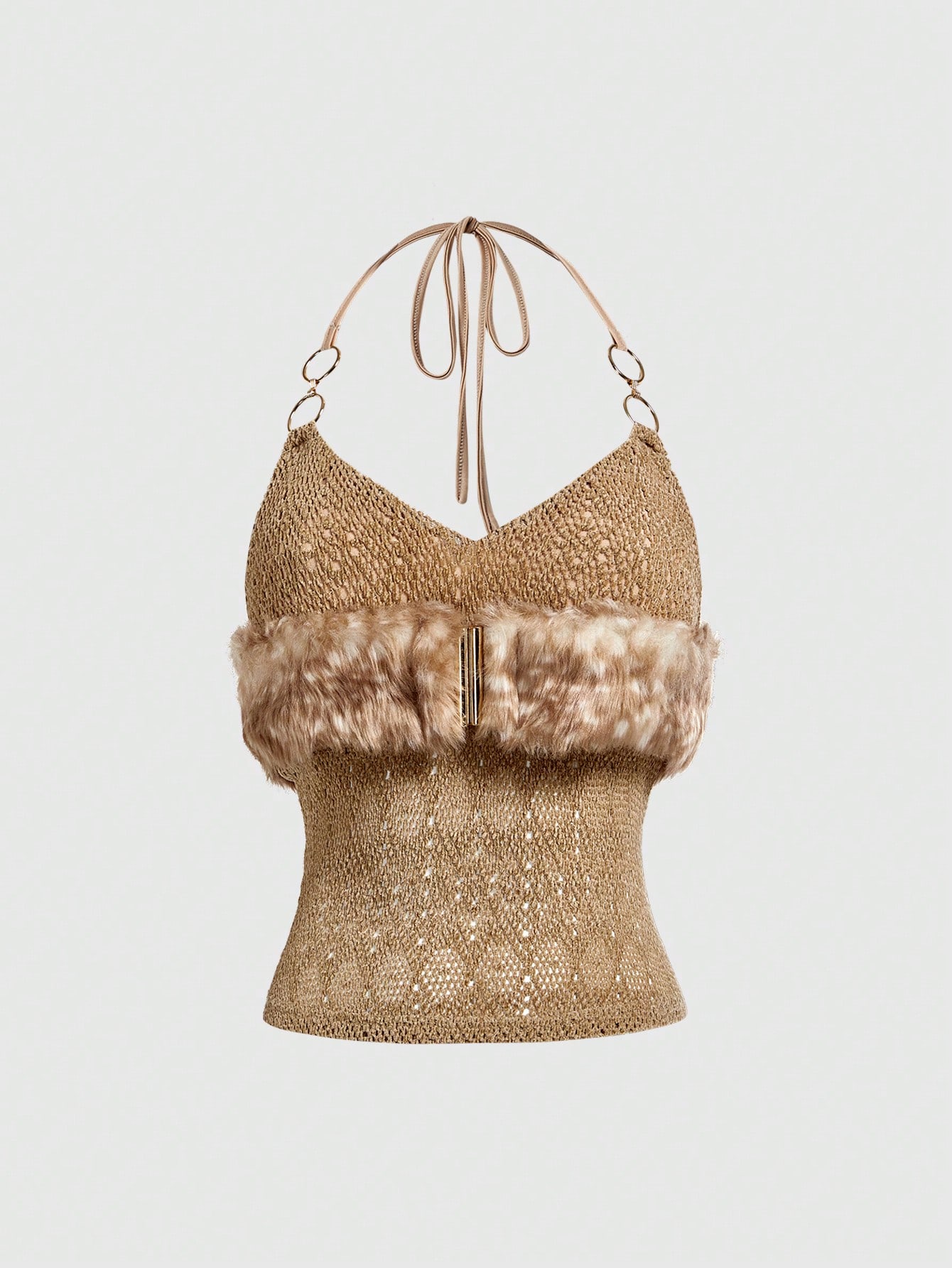 Hippie Women's Y2K Baddie Vintage Sexy Music Festival Hollow-Out Furry Patchwork Knit Detail Halter Neck Camisole
