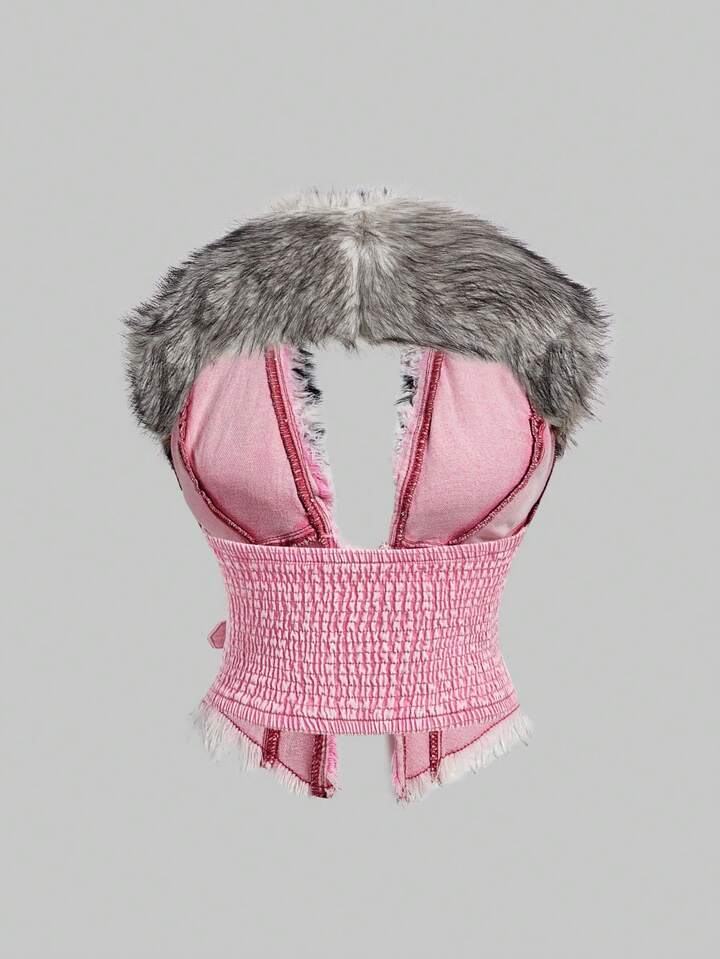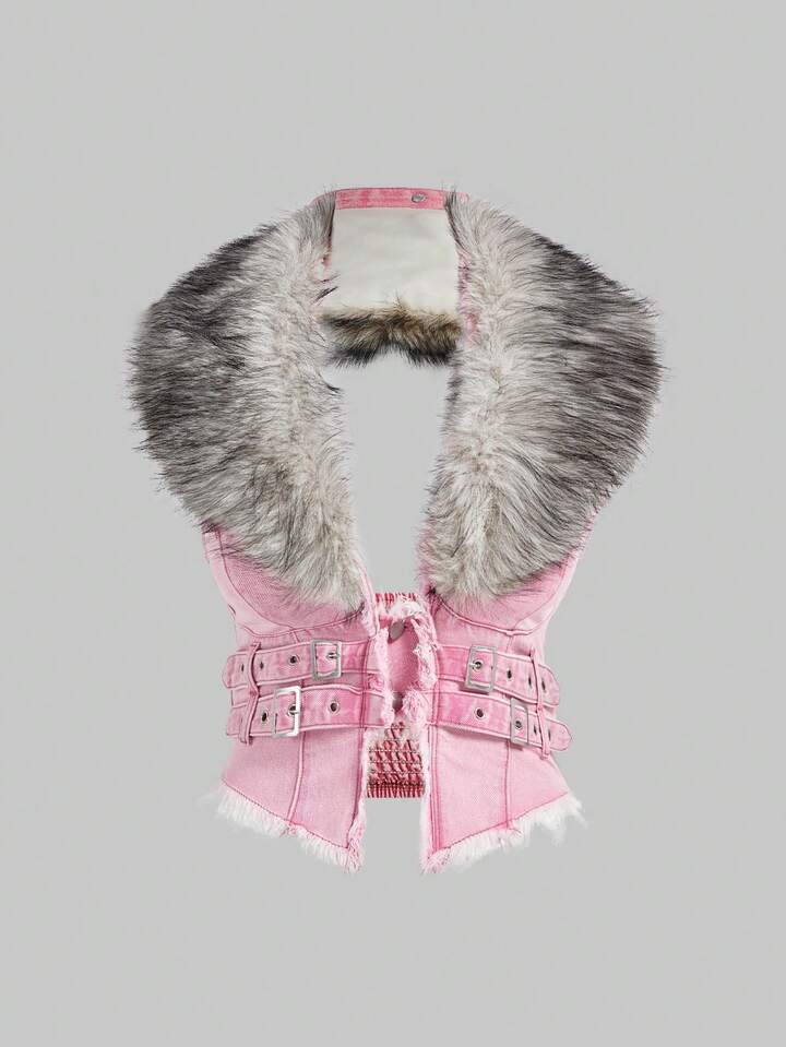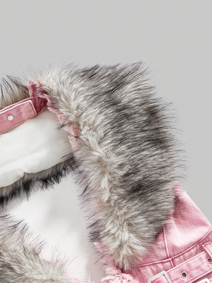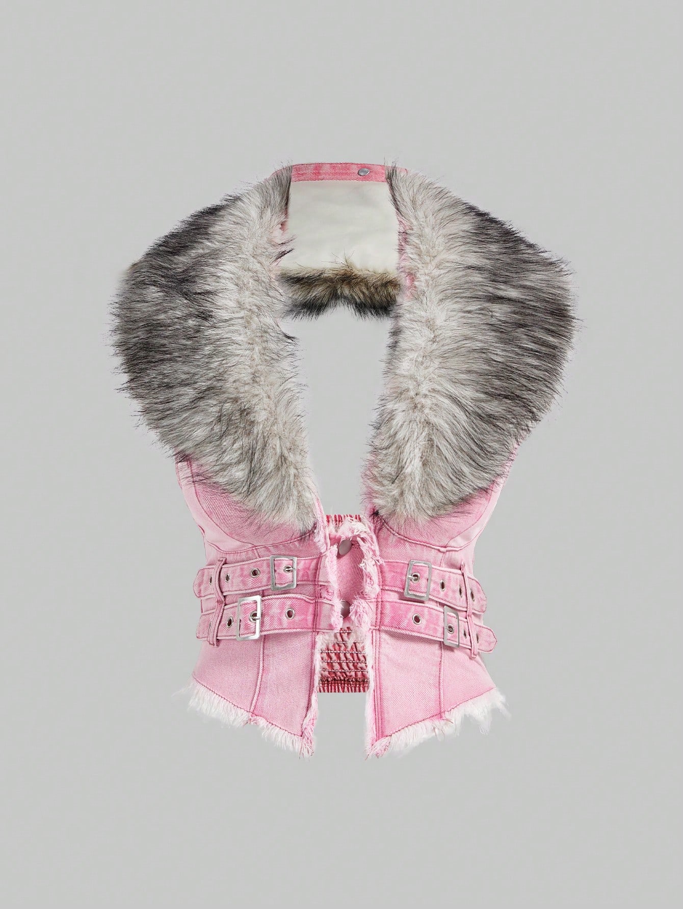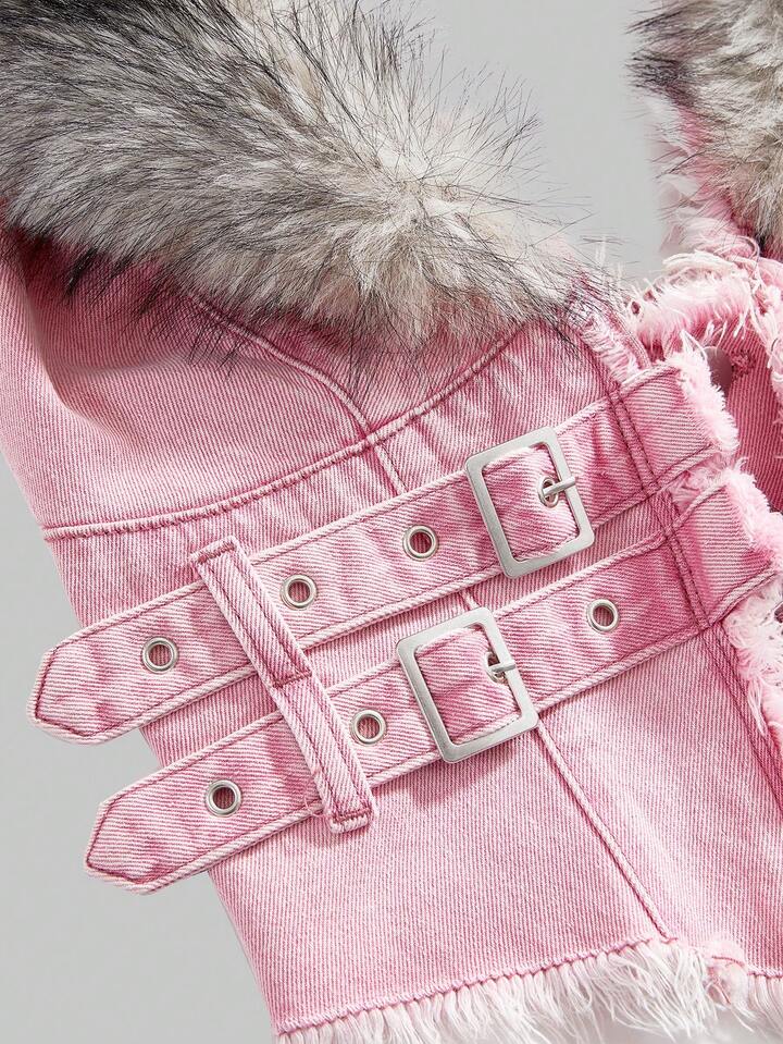 Hippie Y2K Removable Faux Fur Collar Denim Jacket For Women