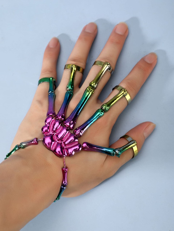 Holographic Skeleton Hand Design Mittens Bracelet