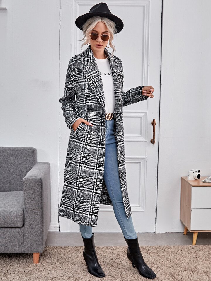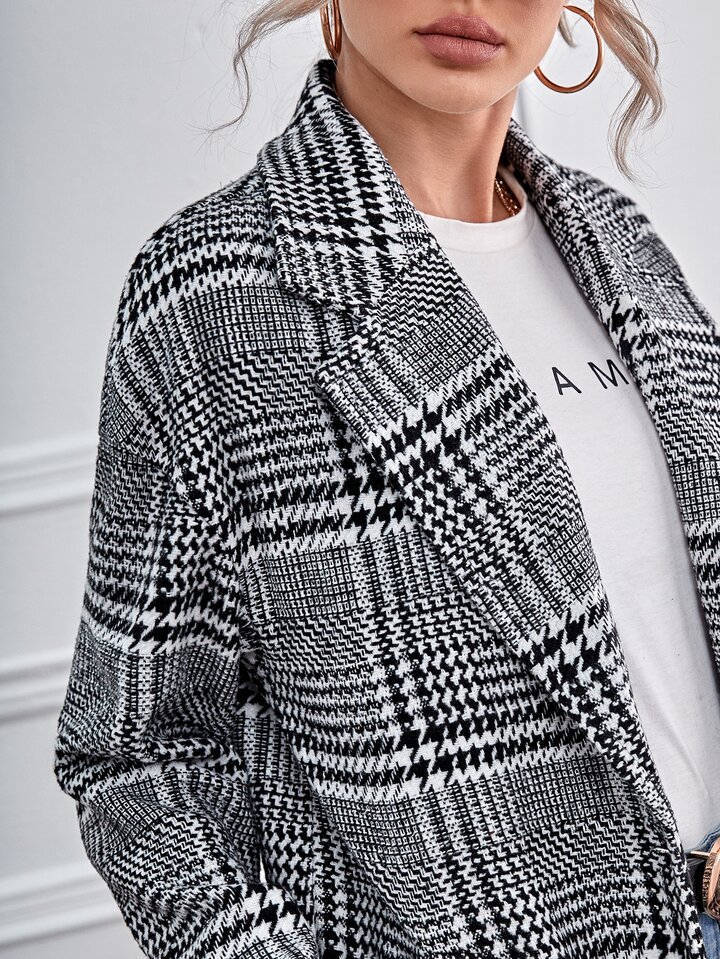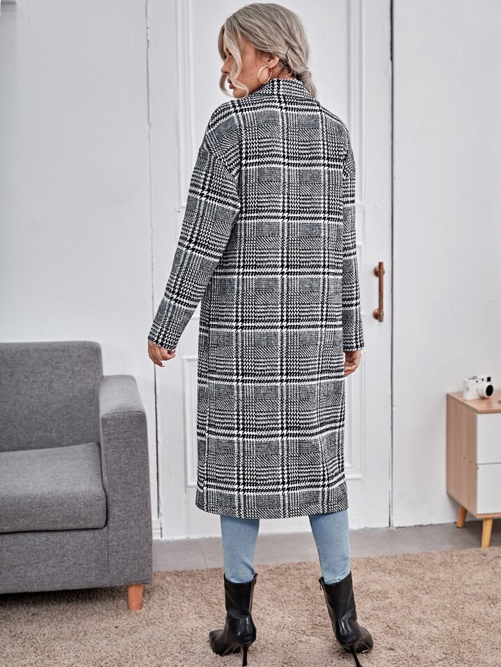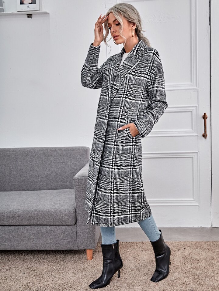 Houndstooth Print Lapel Collar Single Button Overcoat
