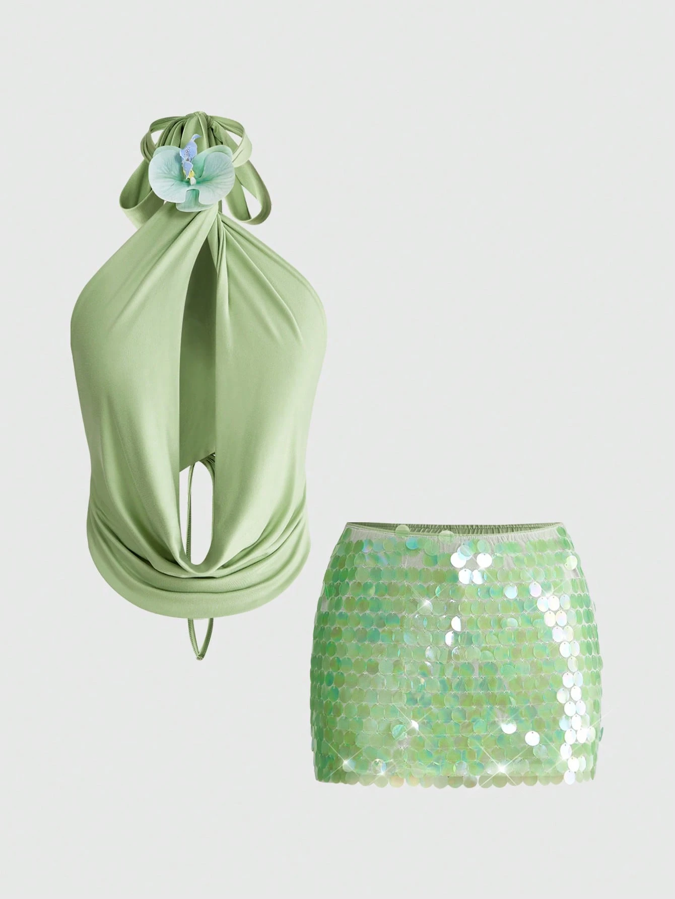 Island Vacation Chic Slogan Floral Embroidery Cropped Cami Top Paired With Low-Waist Mini Shorts Women 2 Pieces Set