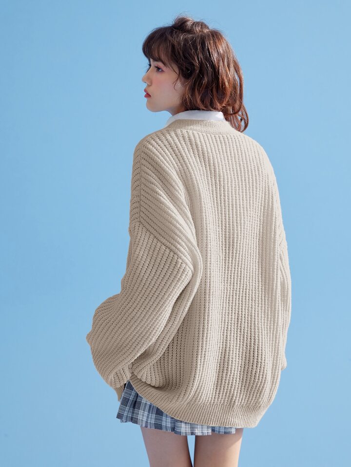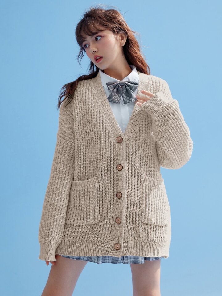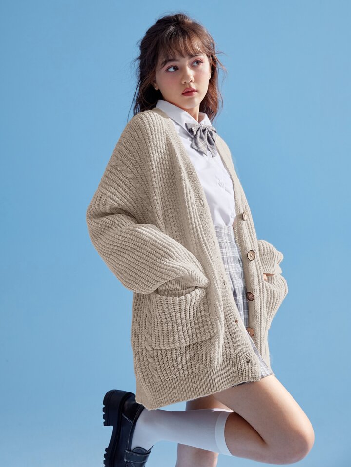 J-Fashion Drop Shoulder Patch Pocket Cardigan, School,Long Sleeve Tops